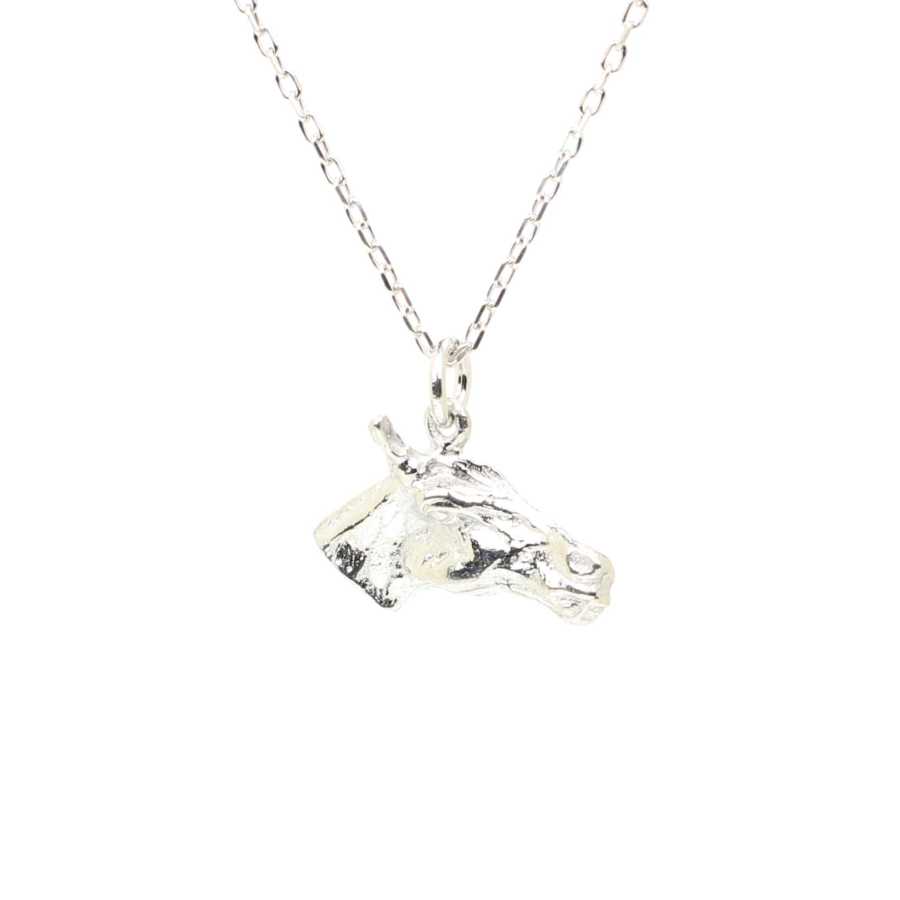 Gümüş kolye 925 ayar gümüşten yapılmıştır. At kafası model kolye 1,5 cm'ye 1,1 cm boyutlarındadır. Zinciri 45 cm uzunluğundadır ve taşsızdır. Ağırlığı 2,32 gramdır.