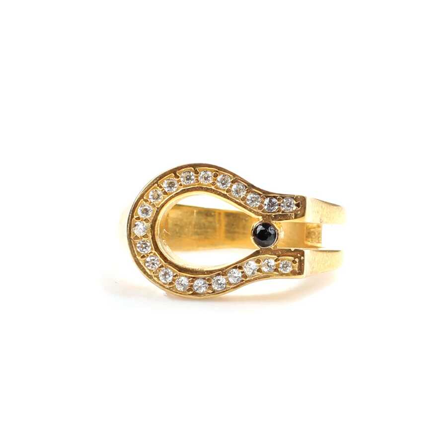 Yüzük 925 ayar gümüşten üretilmiştir. At nalı figürü şeklinde yüzük 1,2 cm'ye 1,6 cm boyutlarındadır. Resimdeki yüzük 13 ölçüdür, ancak tüm ölçüler yapılabilmektedir. Yüzük zirkon taşlıdır. Ağırlığı 7,11 gramdır.