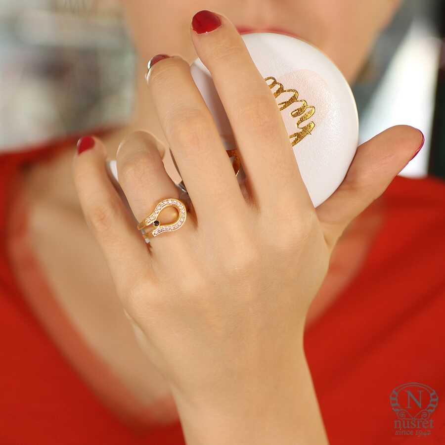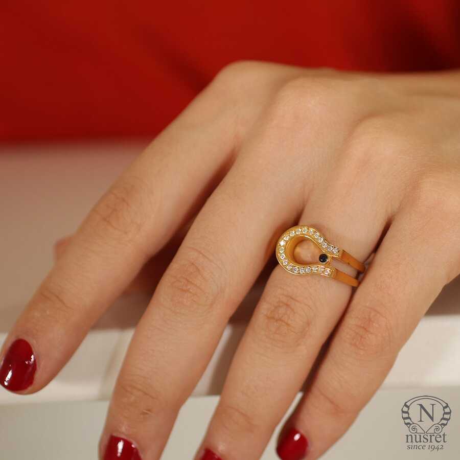 925 Ayar Gümüş At Nalı Model Taşlı Yüzük