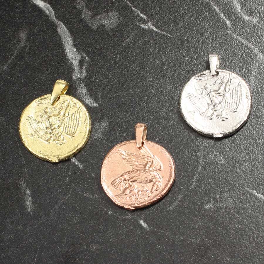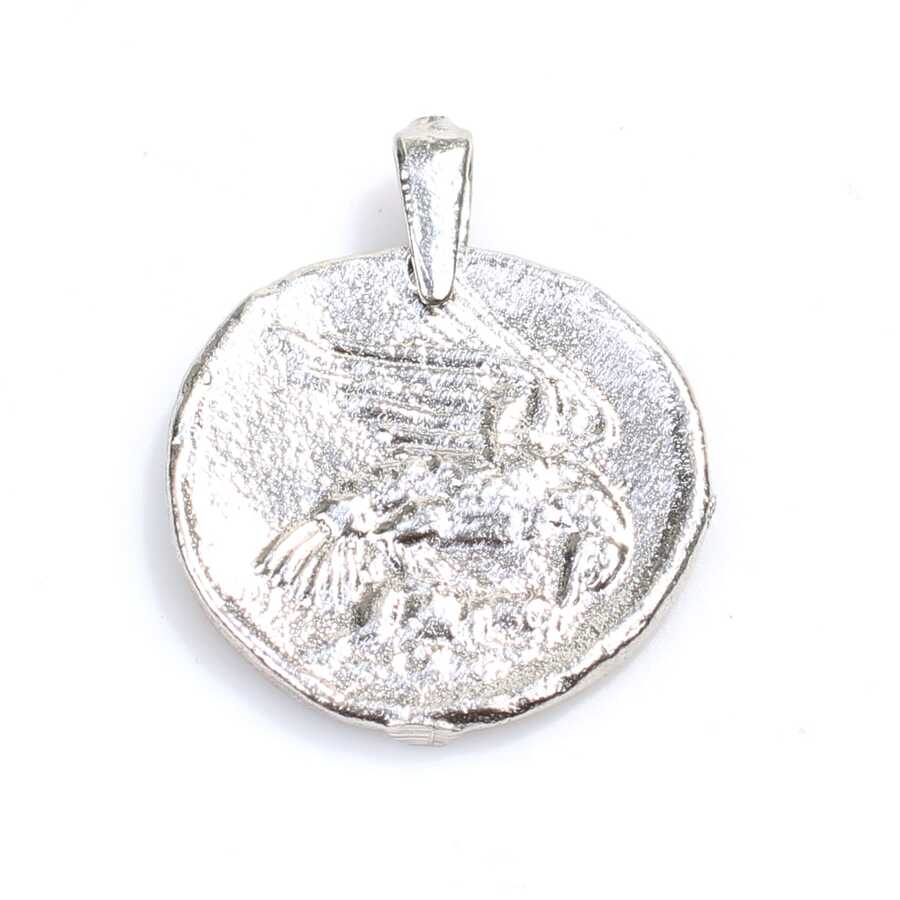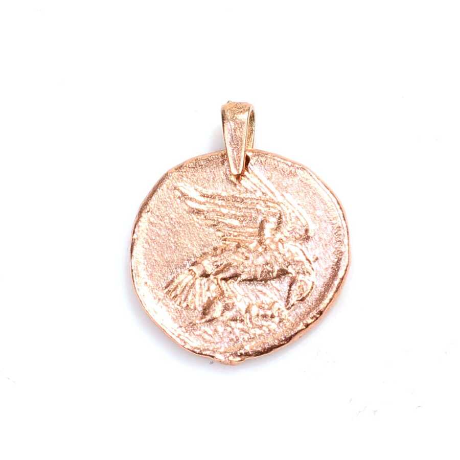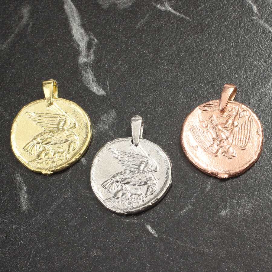 925 ayar gümüştür 20 x 24 mm ebadında avını yakalamış kartal figürlü kolye ucunun sarı pembe veya beyaz renkleri mevcuttur. Gramı: 3,46 gr