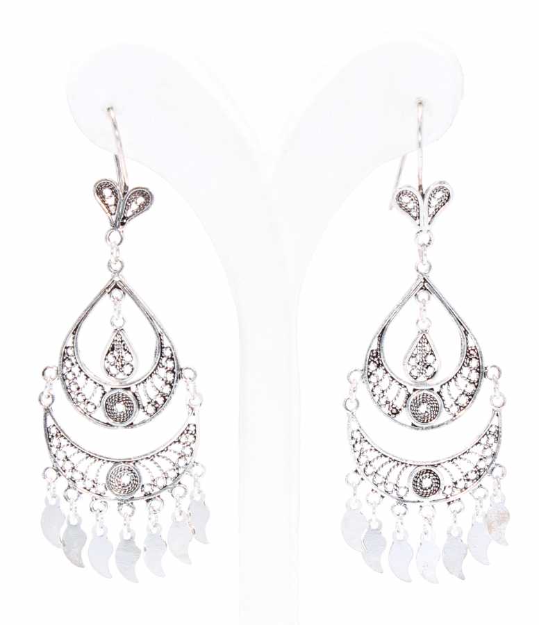 925 Ayar Gümüş Avize Motifli Pul Sallantılı Telkari Küpe