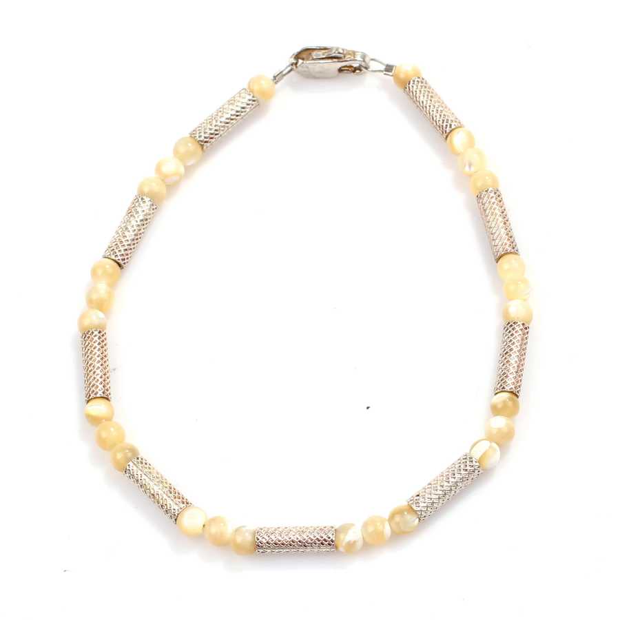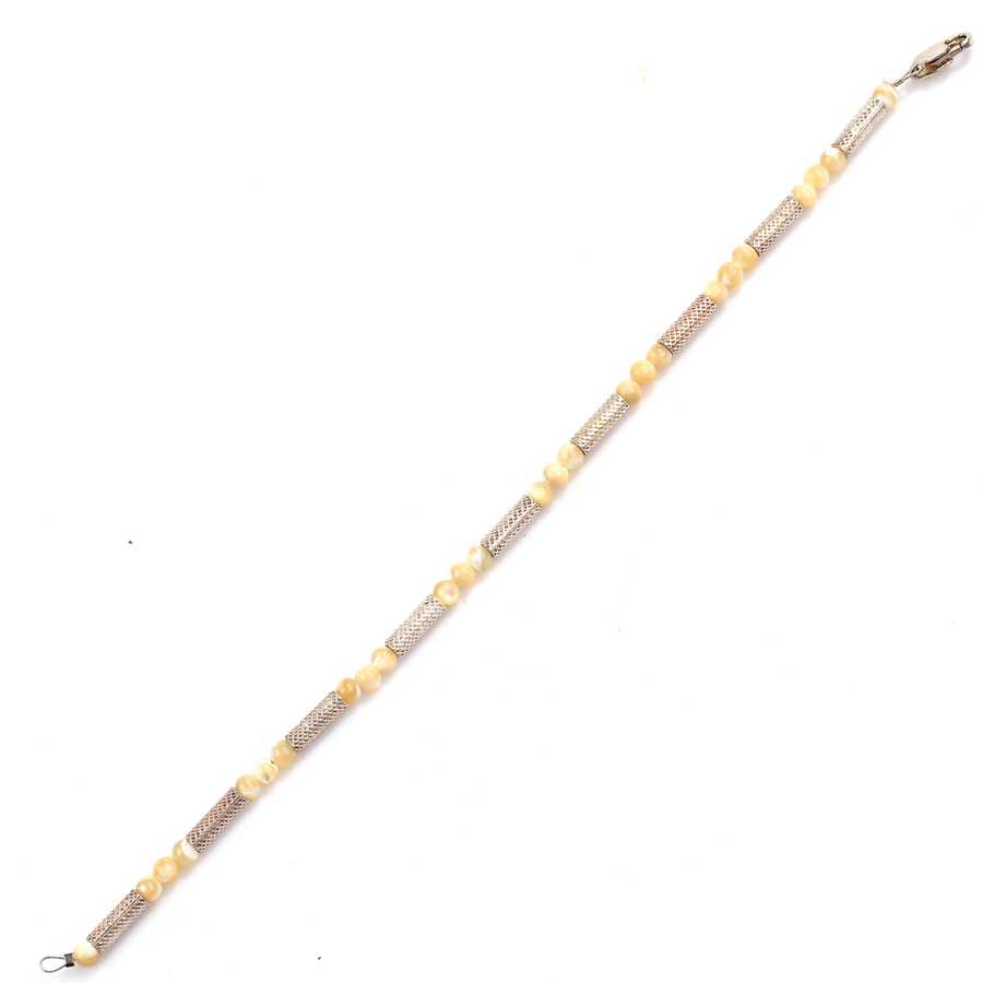Bileklik 925 ayar gümüşten imal edilmiştir. Gümüş parçalı model bileklik 0,4 cm eninde ve 20 cm uzunluğundadır. Bileklik aytaşı taşlıdır. Bileklik taş aralarında gümüş parçalar kullanılarak tasarlanmıştır. Gümüş bileklik 6,75 gram ağırlığındadır.