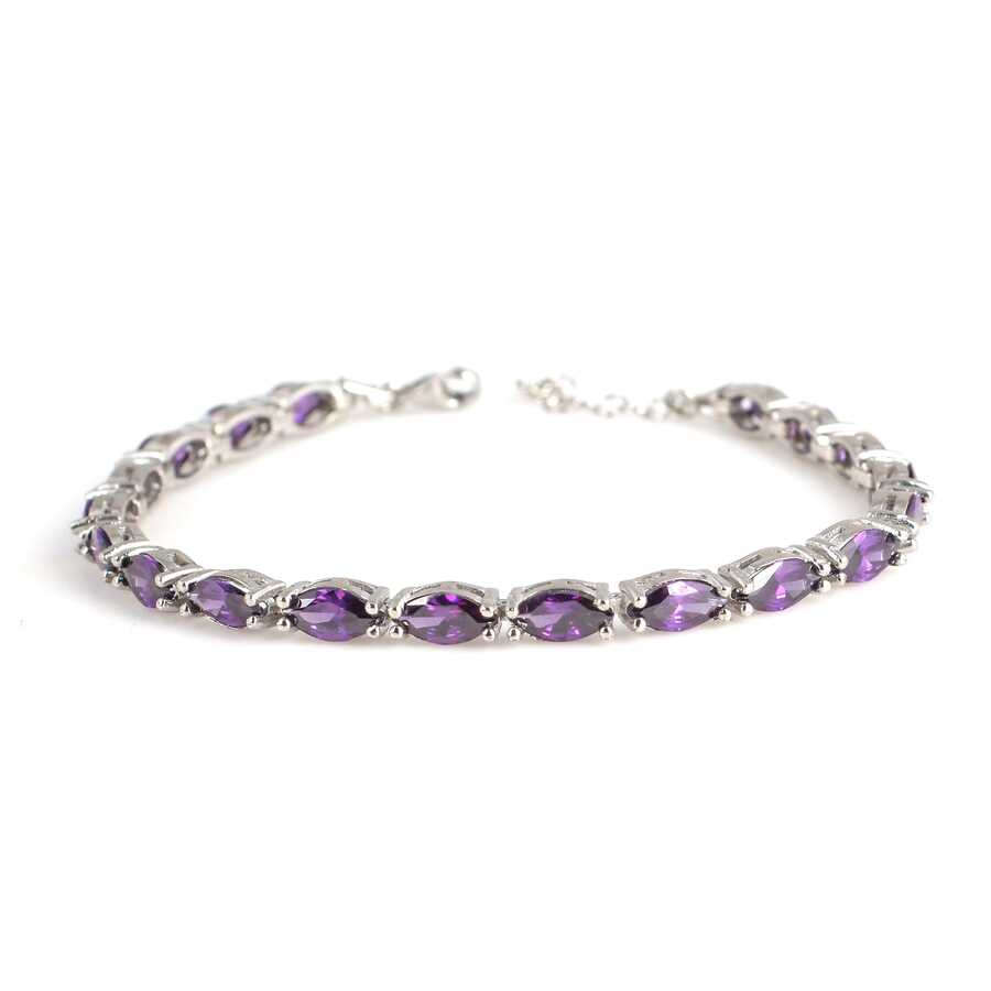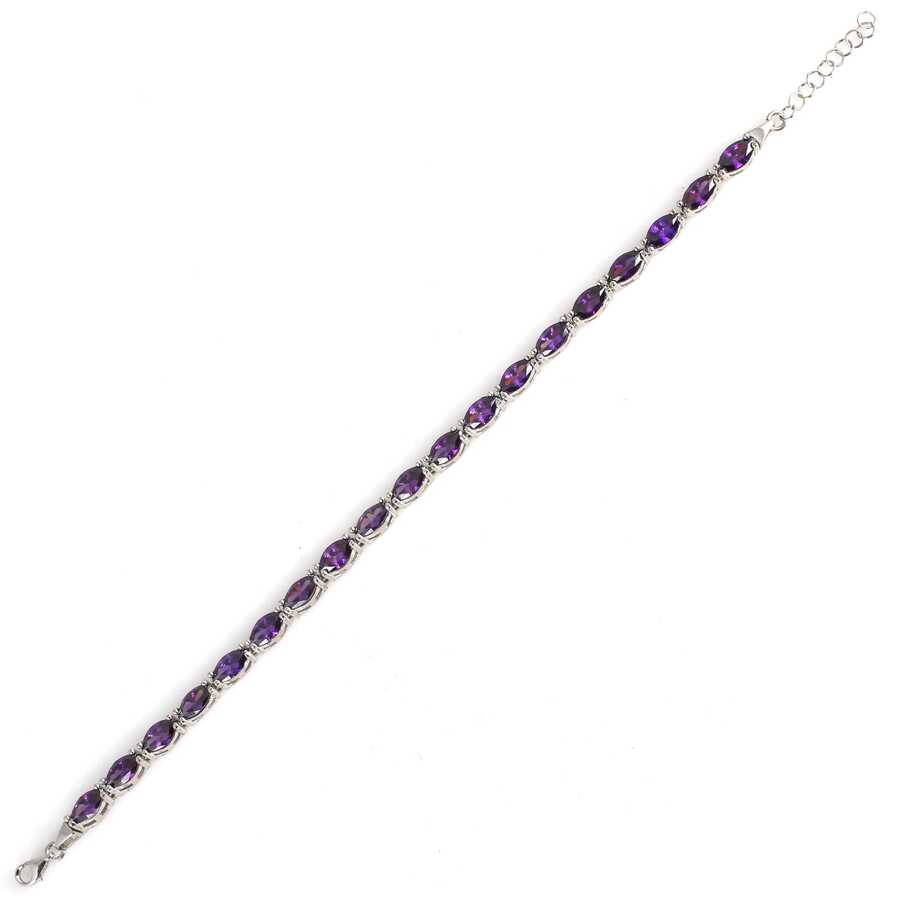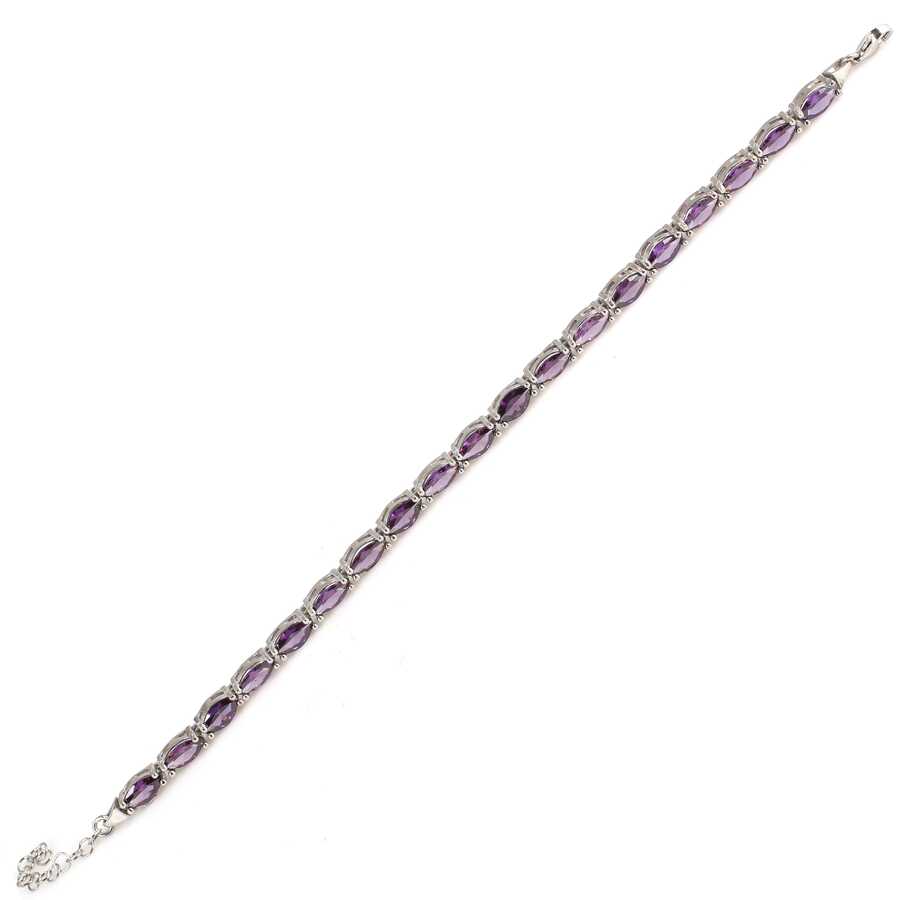 925 Ayar Gümüş Badem Ametist Taşlı Suyolu Bileklik