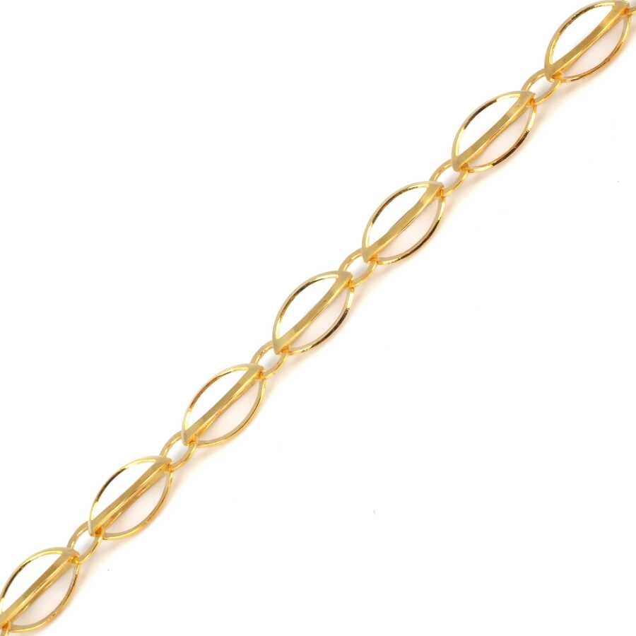 Gelince Haber Ver Bileklik 925 ayar gümüşten imal edilmiştir. Çift taraflı badem zincir bileklik 23 cm uzunluğundadır. Bileklik 1,1 cm genişliğinde ve 0,7 cm kalınlığındadır. Gümüş elips parça 2,0 cm'ye 1,1 cm ve yuvarlak halkanın boyutu 0,9 cm boyutlarındadır Bileklik taşsızdır. Zincir bileklik sarı renk rodajlıdır. Ağırlığı 15,34 gramdır.