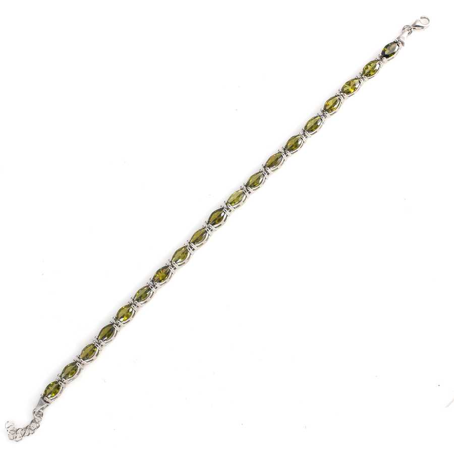925 Ayar Gümüş Badem Peridot Taşlı Suyolu Bileklik