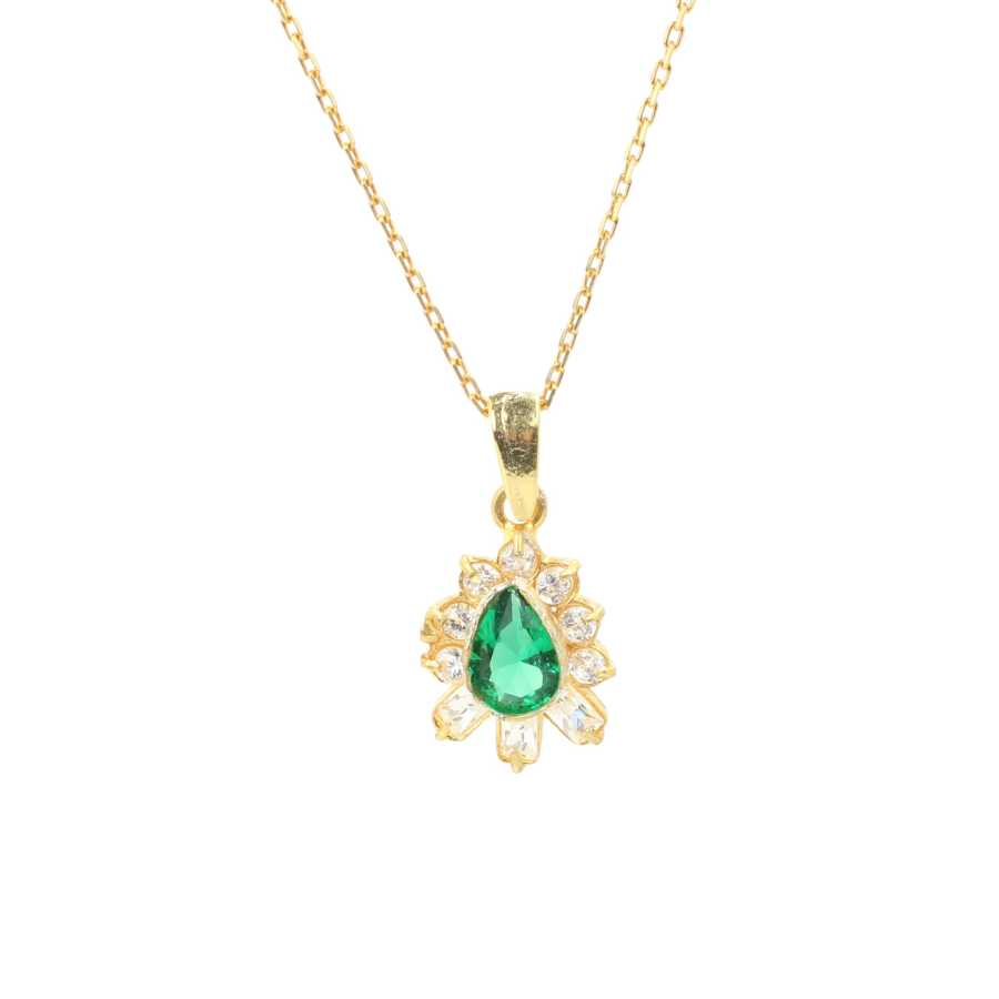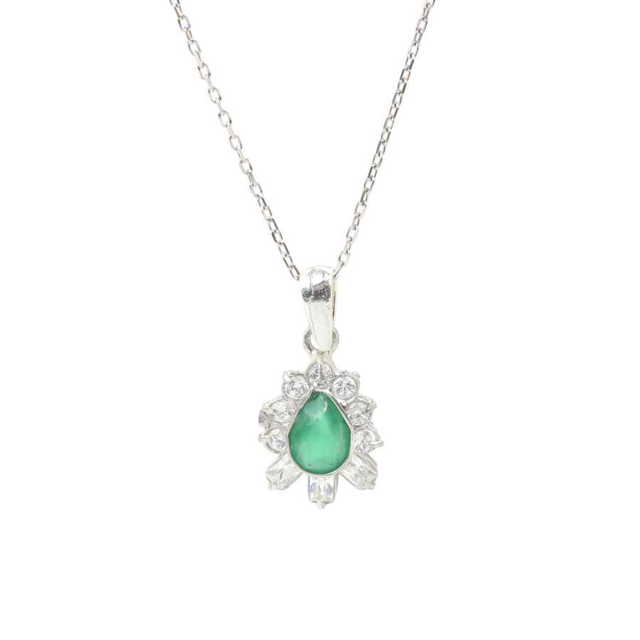 925 Ayar Gümüş Baget Taşlı Damla Tasarım Zümrüt Kolye