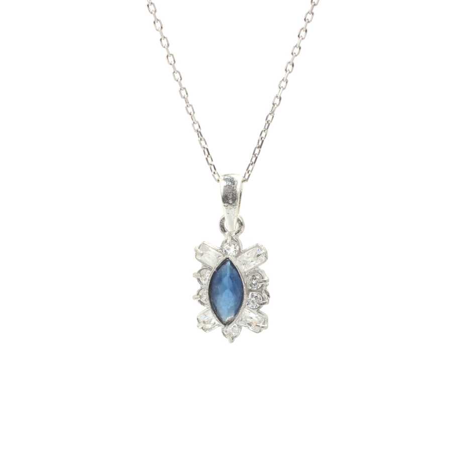 925 Ayar Gümüş Baget Taşlı Mekik Tasarım Safir Kolye