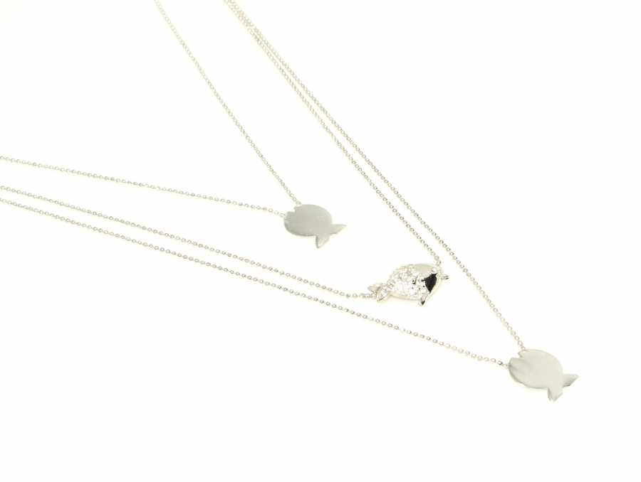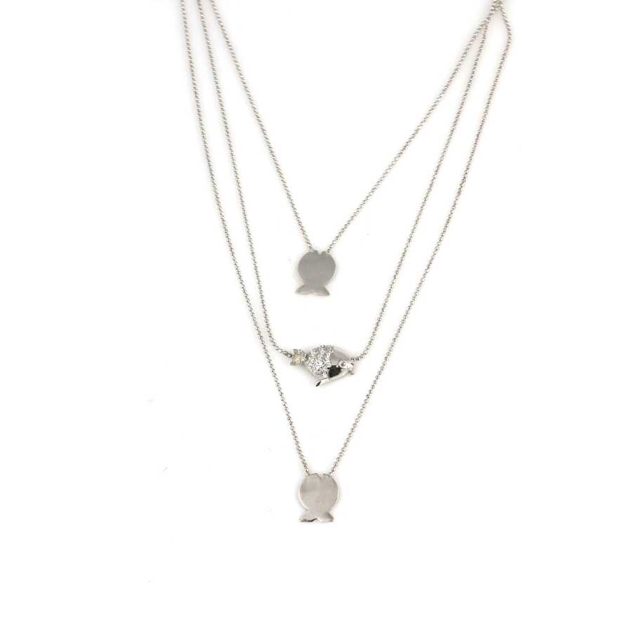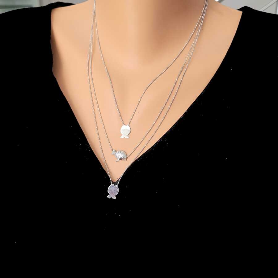 925 Ayar Gümüş Balık 3 Zincir Kolye