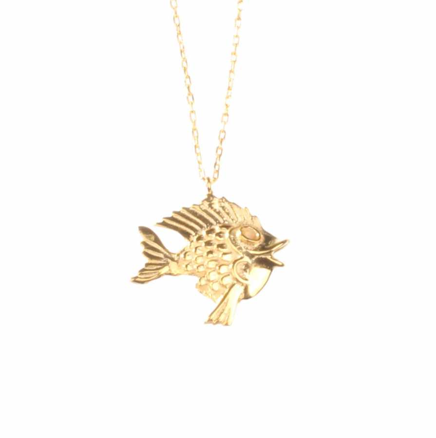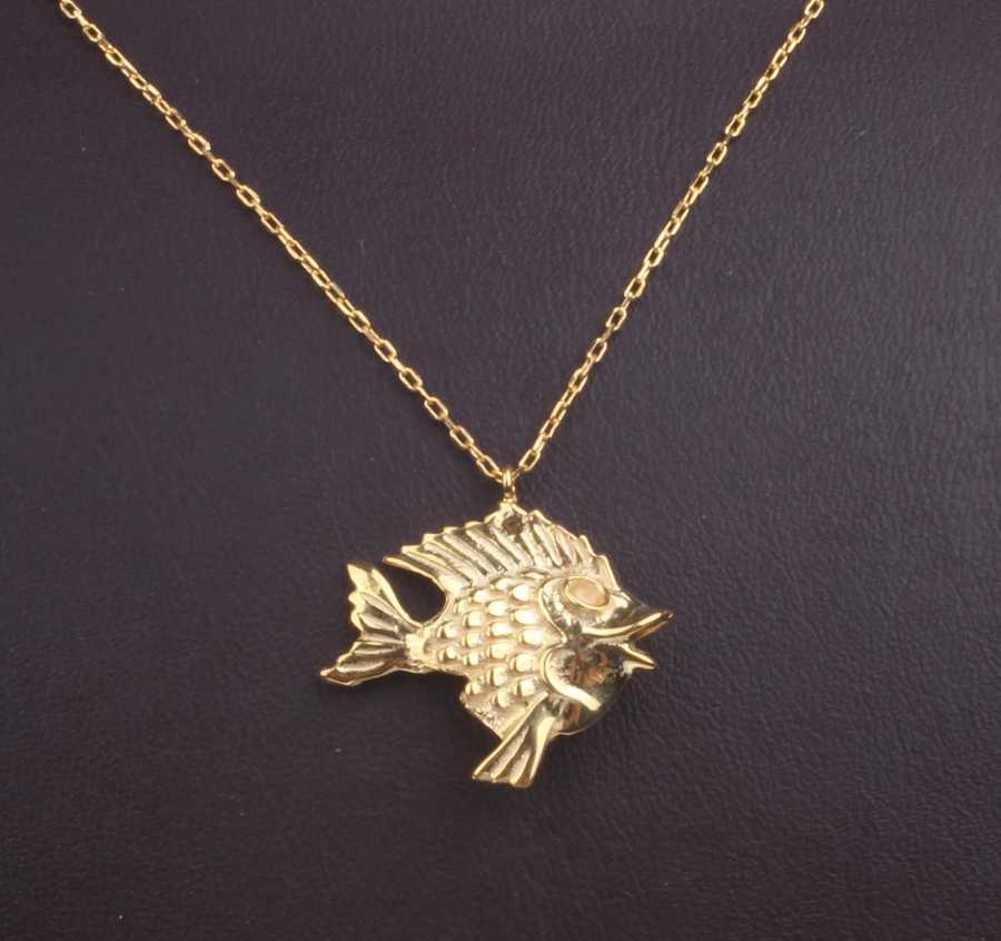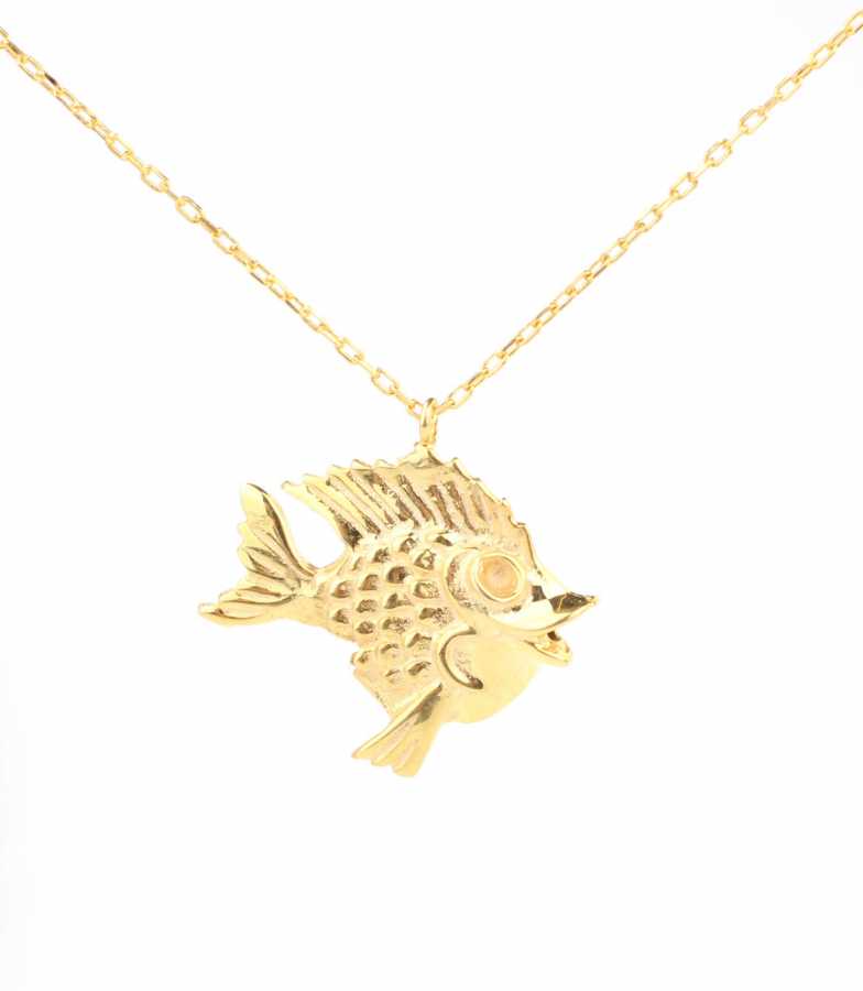 925 Ayar Gümüş Balık Charm Kolye, Sarı