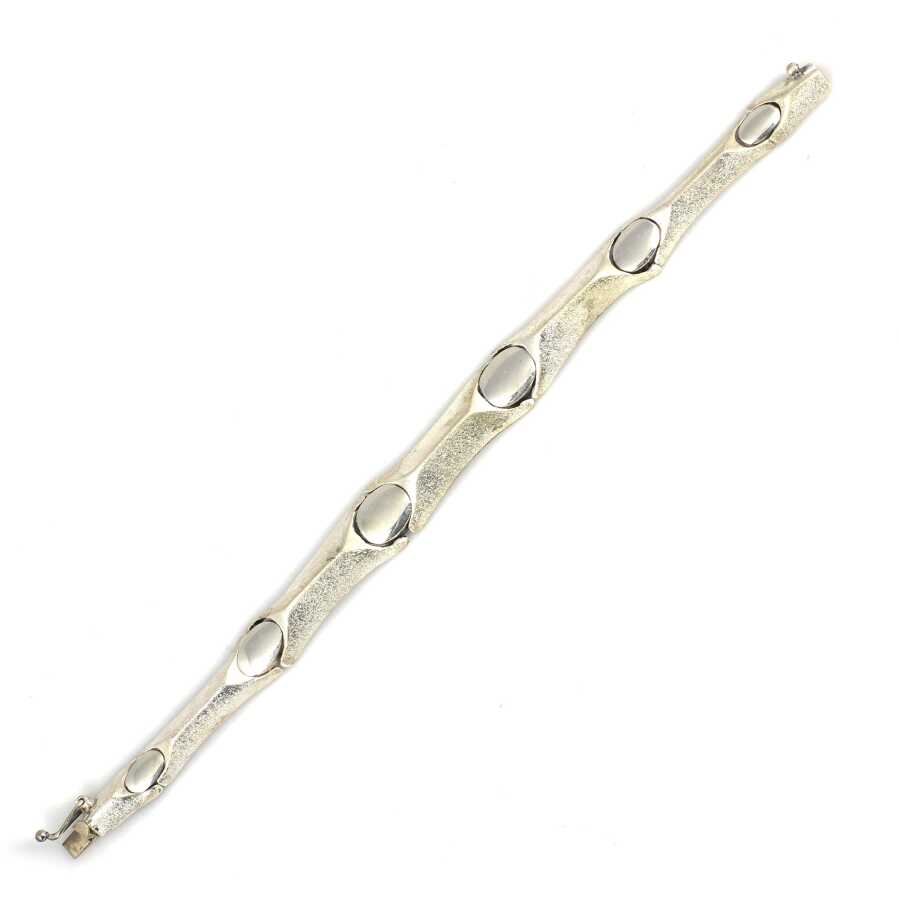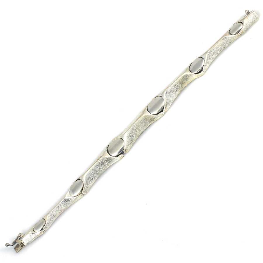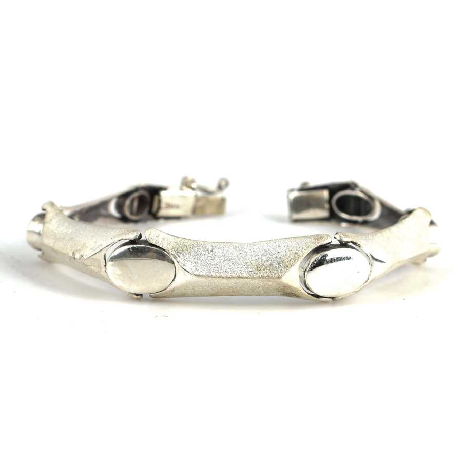 Bileklik 925 ayar gümüşten imal edilmiştir. Gümüş bileklik 1 cm enindedir. Bileklik 17 cm uzunluğundadır. Bileklik üzerine florentin atılarak tasarlanmıştır. Bileklik taşsızdır. Gramı: 12,9