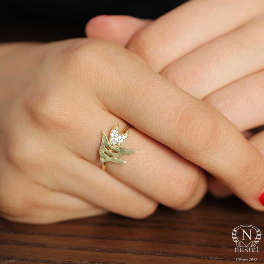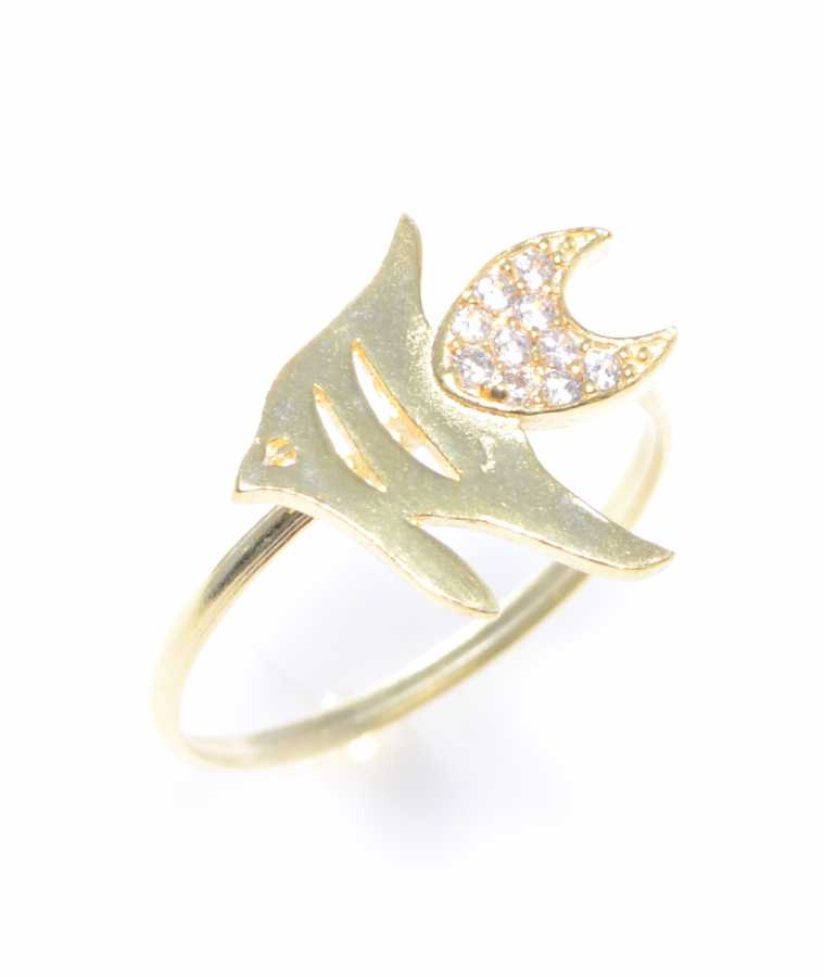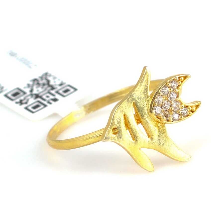 Yüzük 925 ayar gümüşten üretilmiştir. Balık şeklindeki yüzük 15 ölçüdür. Tüm ölçüler yapılabilmektedir. Yüzük beyaz zirkon taşlara sahiptir. Sarı rodaj kaplamalıdır. Balık şeklideki parça 1,5 cm'ye 1,4 cm boyutlarındadır. Ağırlığı 1,29 gramdır.