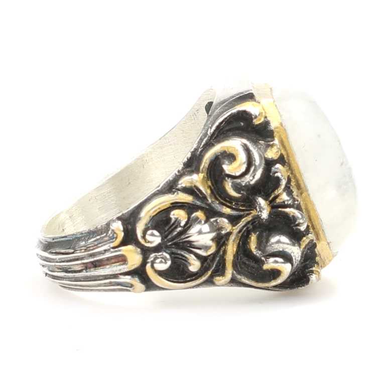 Yüzük 925 ayar gümüşten üretilmiştir. Yüzüğün üzerinde el kalemi atılarak tasarlanmıştır. Taşlı yüzük 1,3 cm'ye 1,3 cm boyutlarındadır. Resimdeki yüzük 17 ölçüdür, ancak tüm ölçüler özel olarak yapılabilmektedir. Yüzük aytaşı taşlıdır. Ağırlığı 14,8 gramdır.