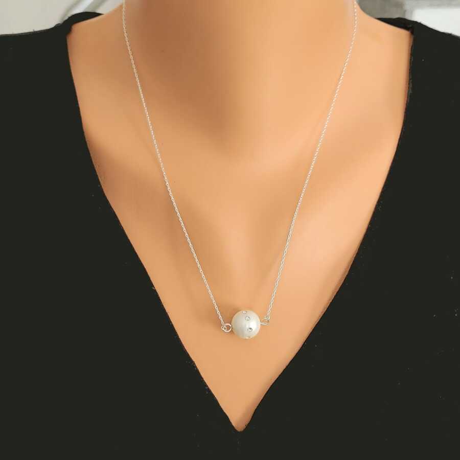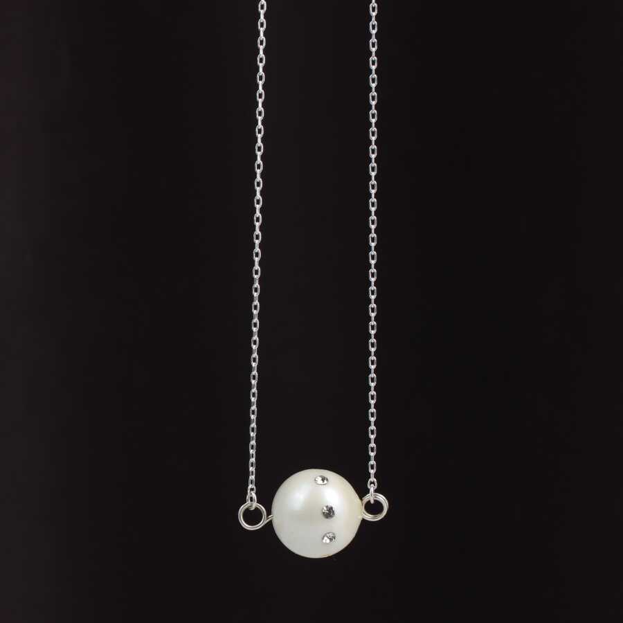 925 Ayar Gümüş Beyaz Renk İncili Üzeri Zirkon Taşlı Kolye