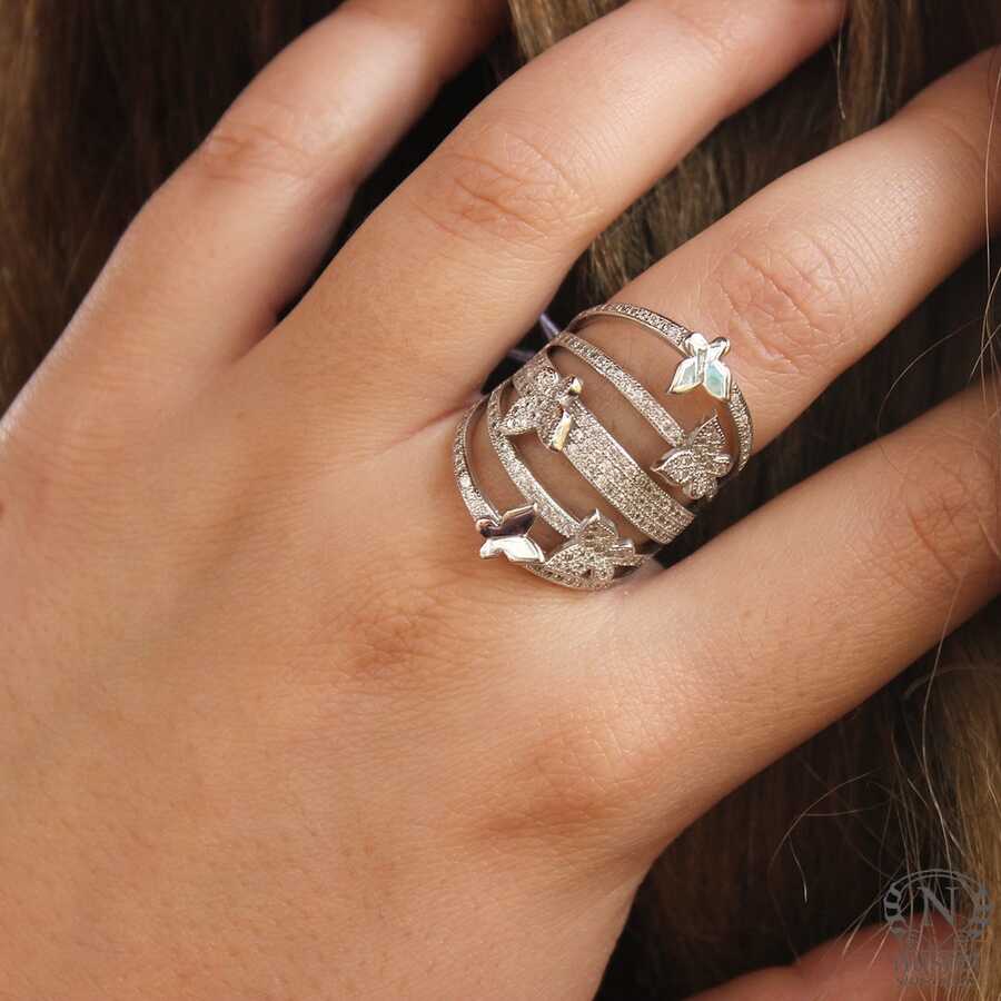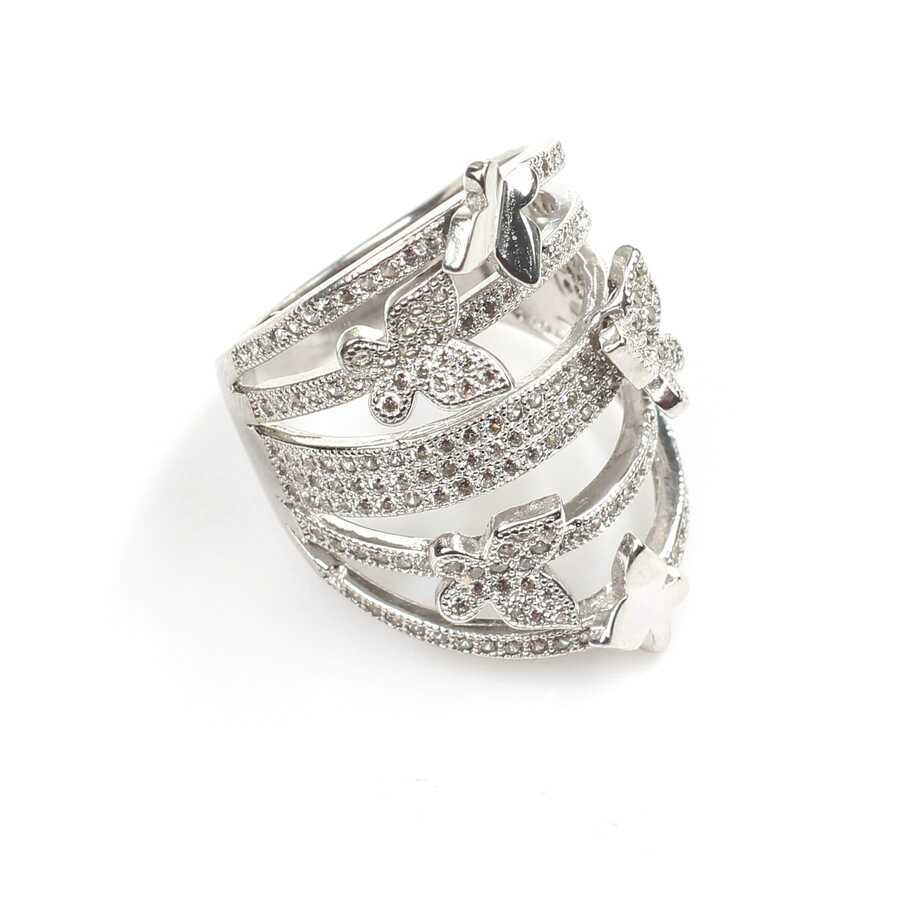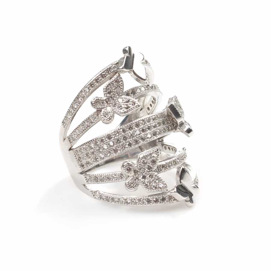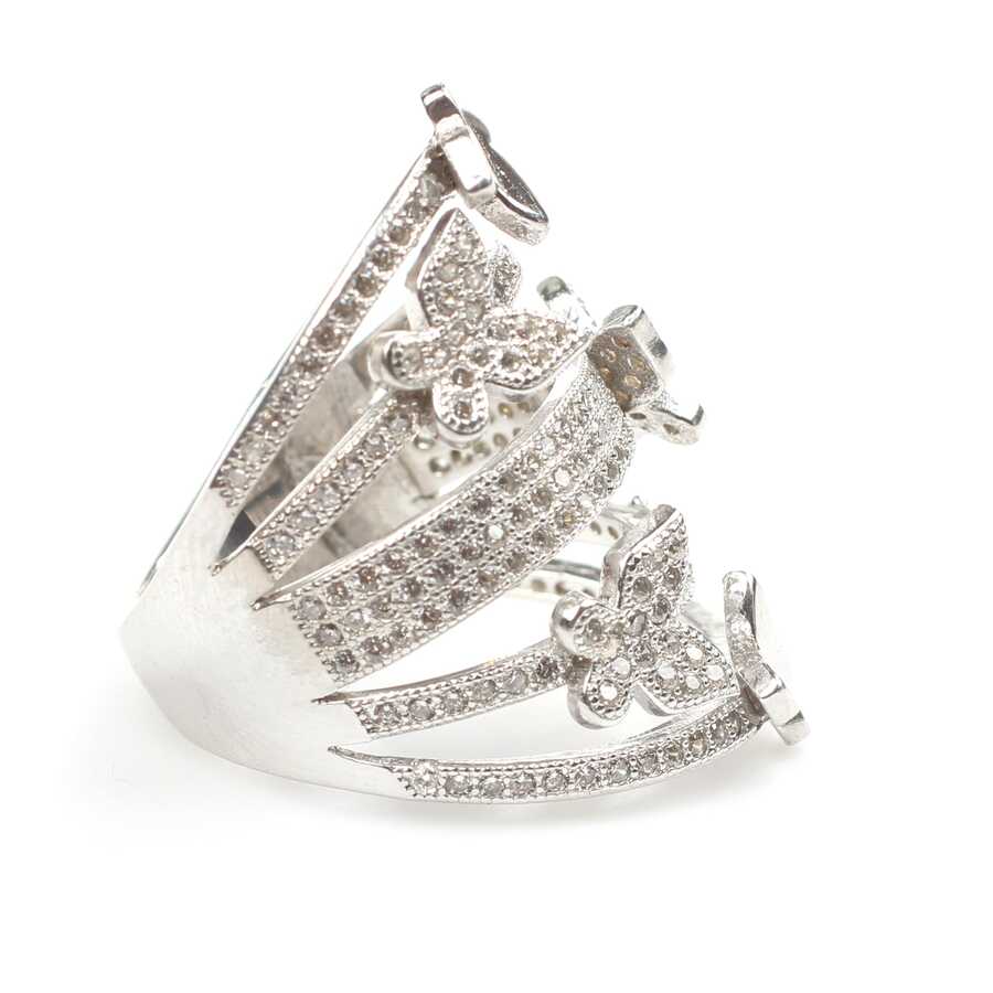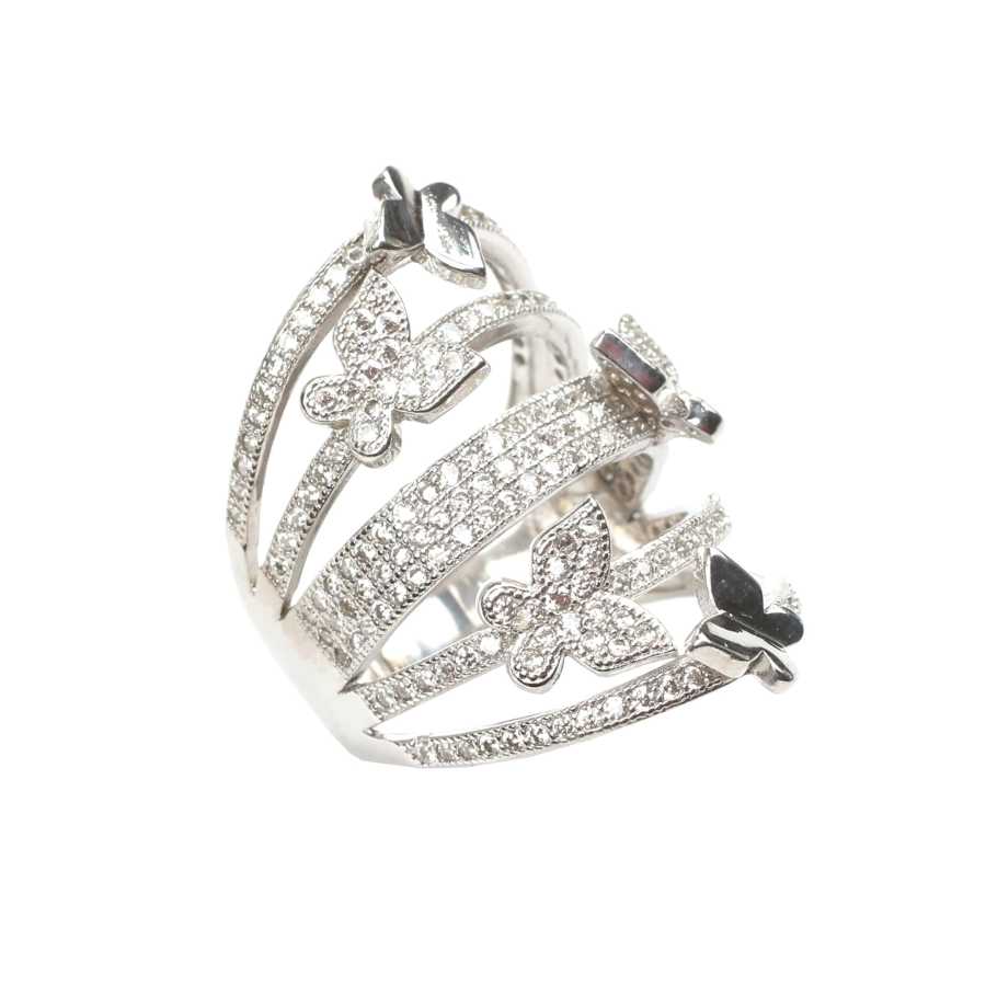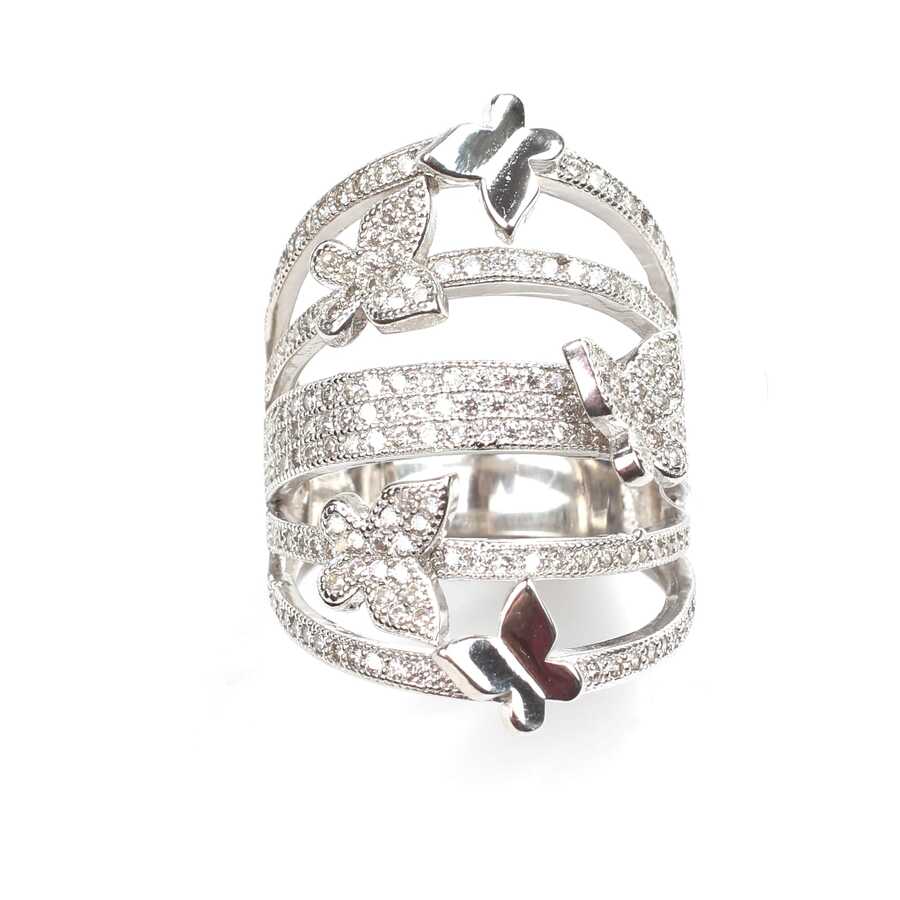 925 Ayar Gümüş Beyaz Renk Zirkon Taşlı Kelebek Model Yüzük