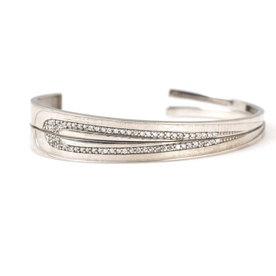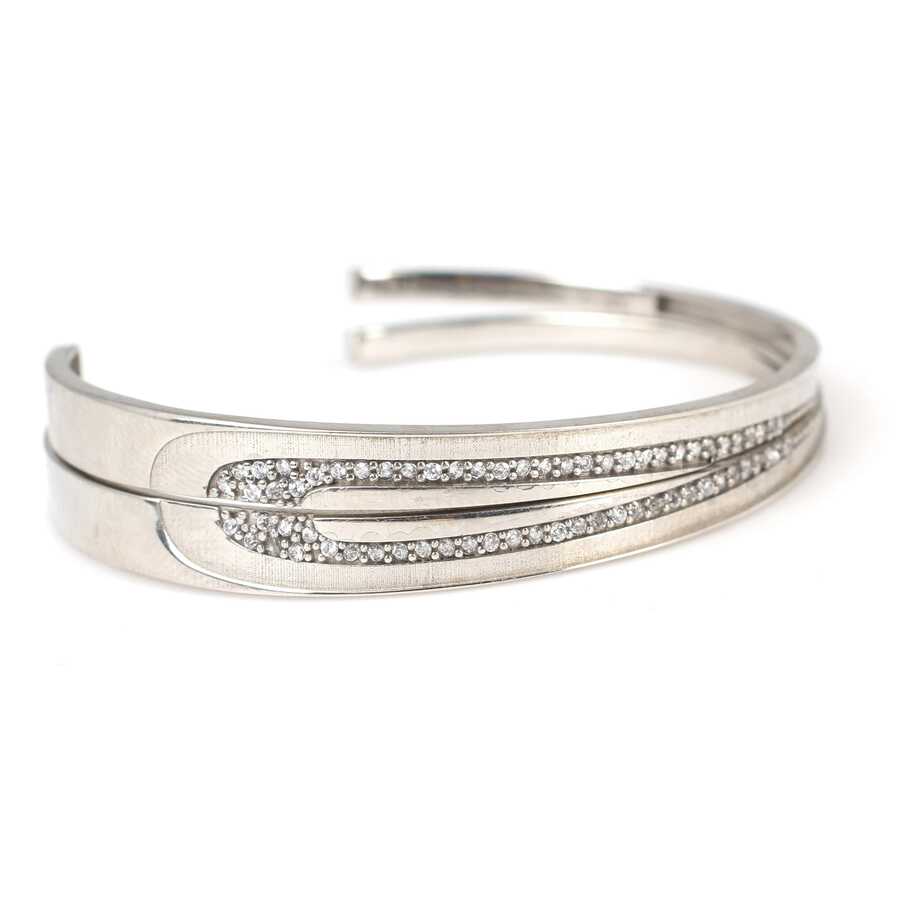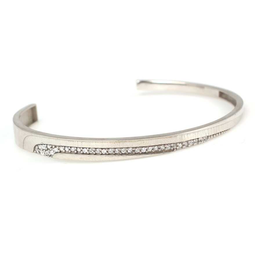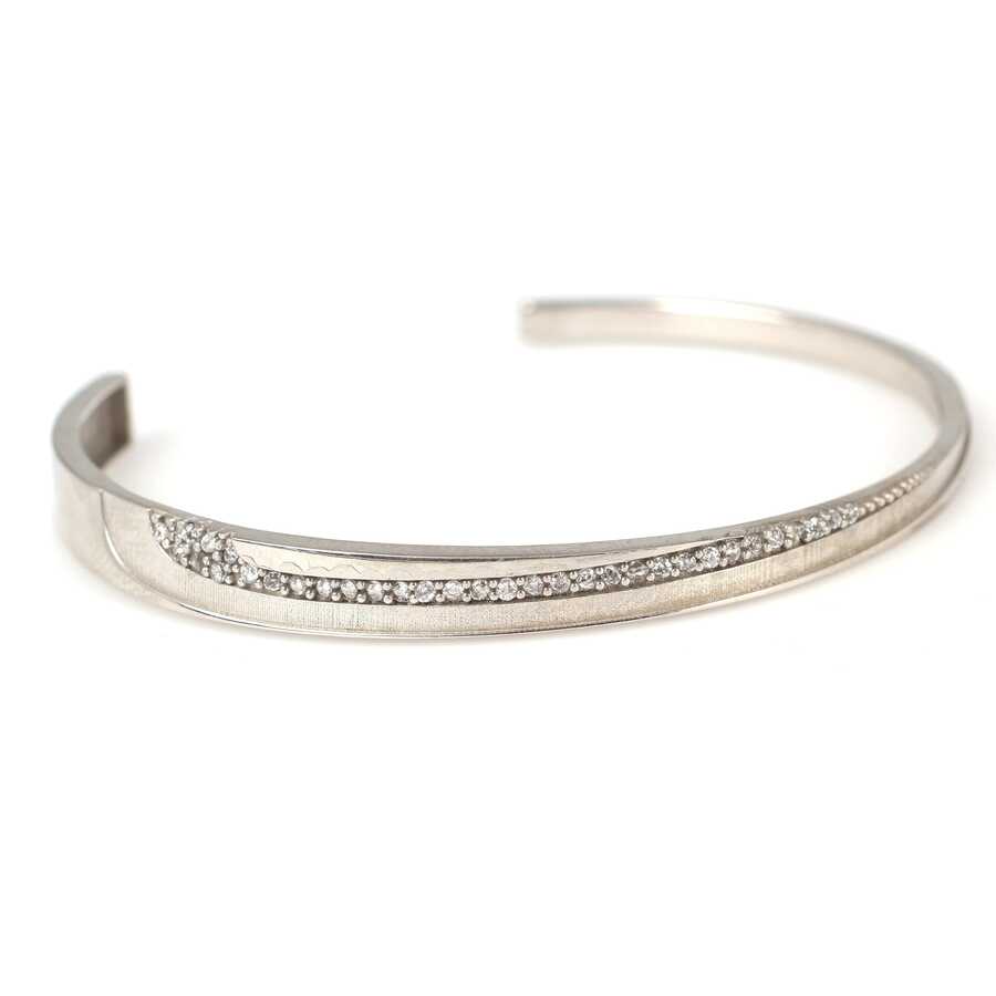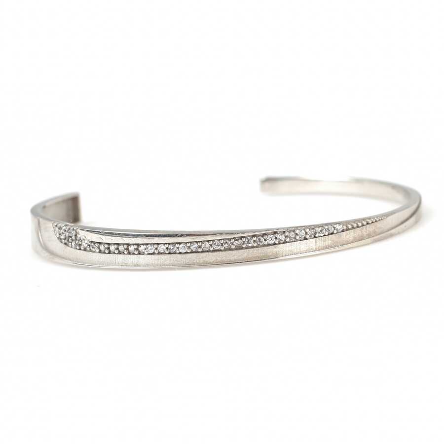 Bilezik 925 ayar gümüşten imal edilmiştir. El işi astar model bilezik 5,8 cm çapında ve beyaz zirkon taşlıdır. Bileziği ister çiftli ister tek veya diğer çiftini eşinize veya sevgilinize verebilirsiniz. Gümüş bilezik 12,54 gram ağırlığındadır