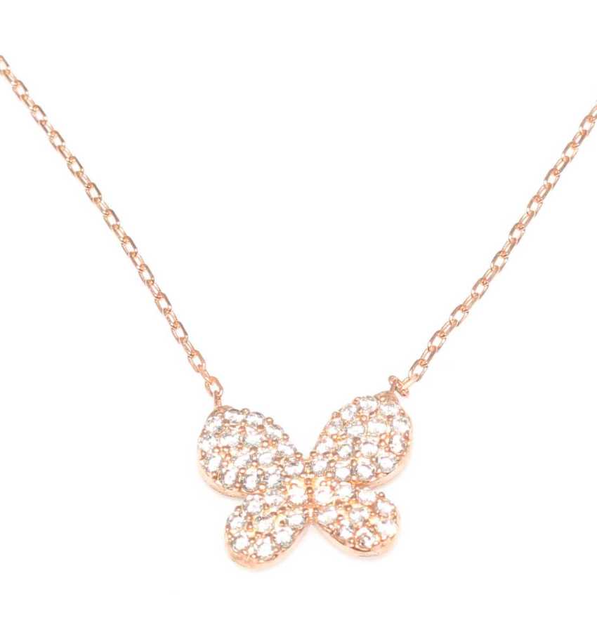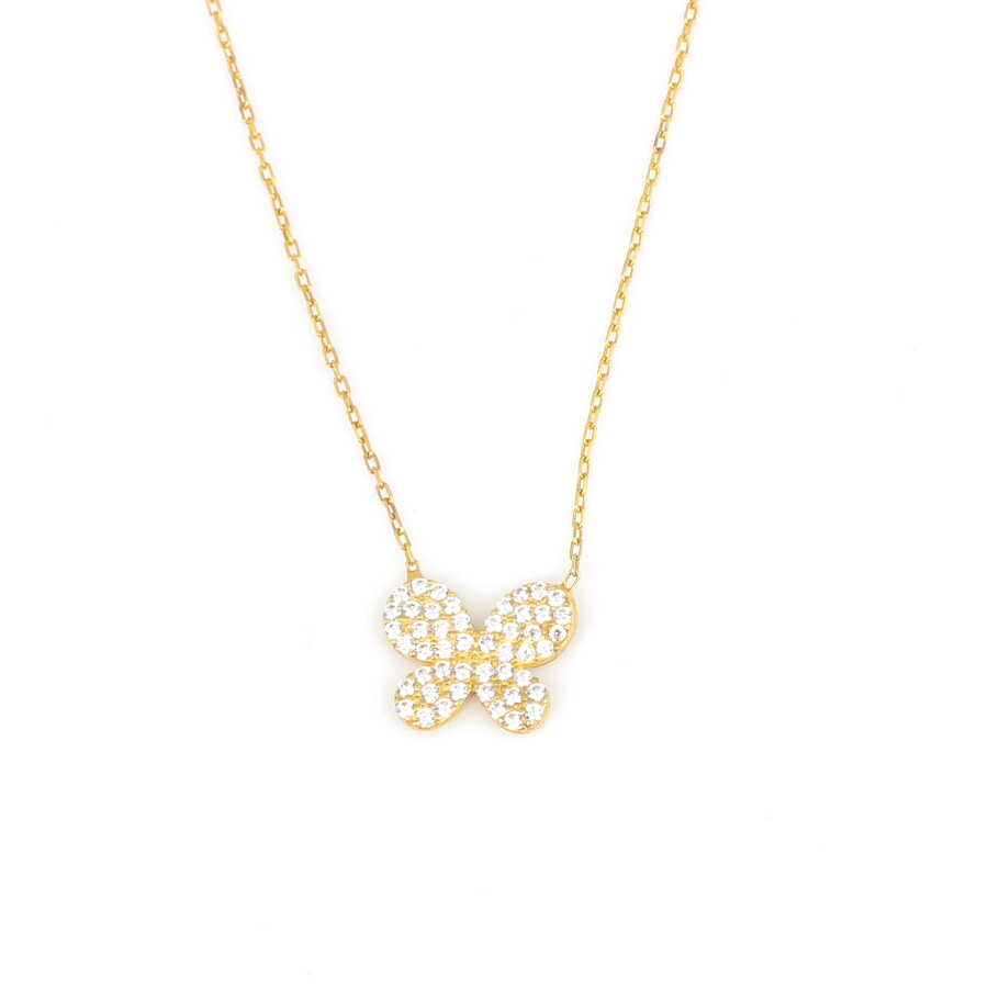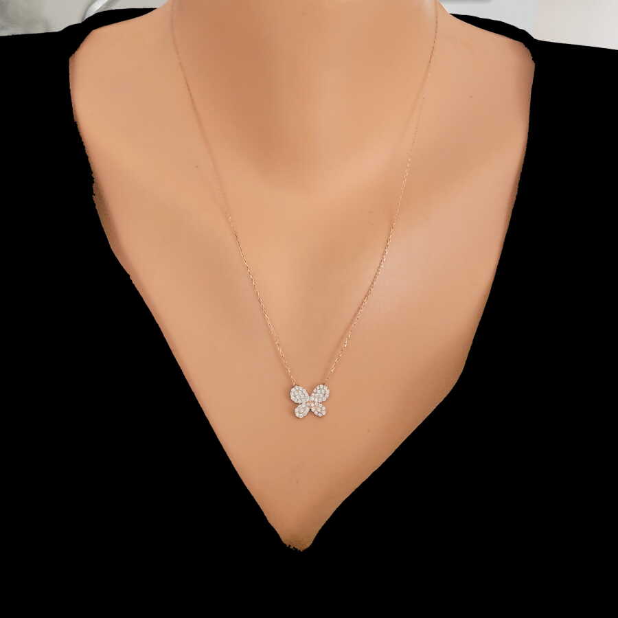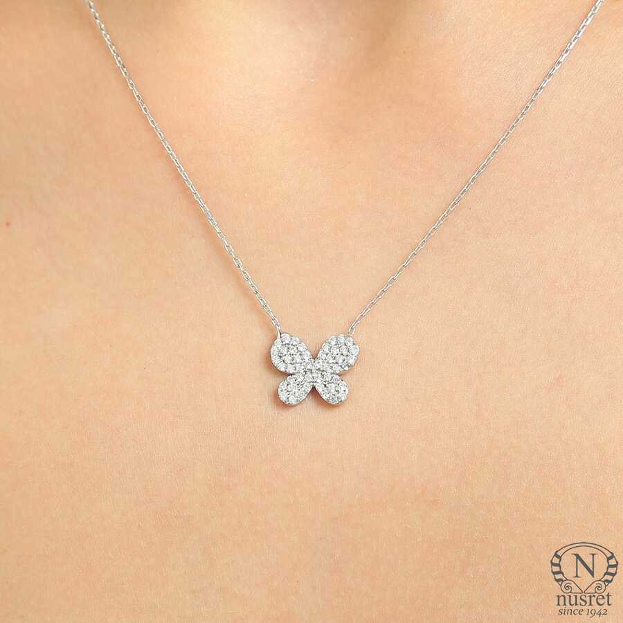 Detaylı kelebek formu, beyaz taş ışıltısıyla göz alıcı bir görünüm kazandırır. Özgürlüğü, yenilenmeyi ve zarafeti simgeleyen kelebek figürü; minimal ama dikkat çekici bir tasarım sunar. Günlük şıklığınızı tamamlayan romantik bir dokunuş sağlar.