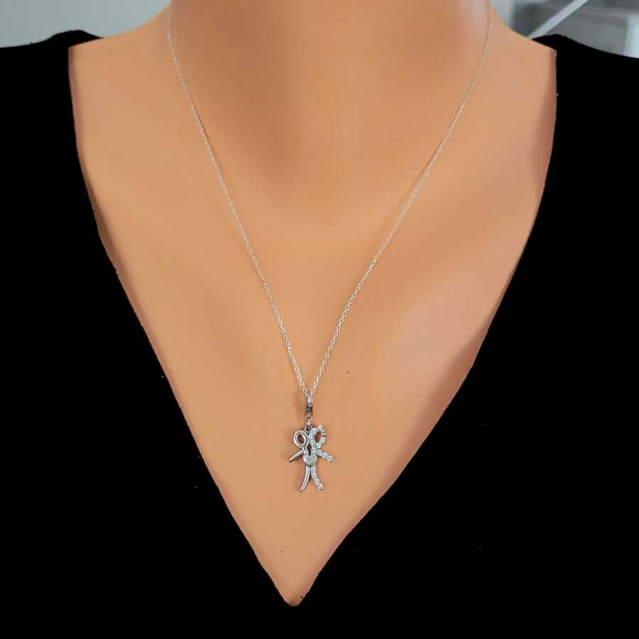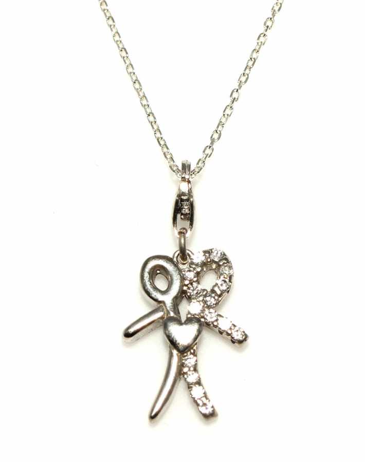 Gümüş kolye 925 ayar gümüşten yapılmıştır. Yan yana iki kişi ve tek birey model kolye 1,8 cm'ye 1,2 cm boyutlarındadır. Zinciri 42 cm uzunluğundadır. Kolyenin taşları zirkondur. Ağırlığı 3,05 gramdır.