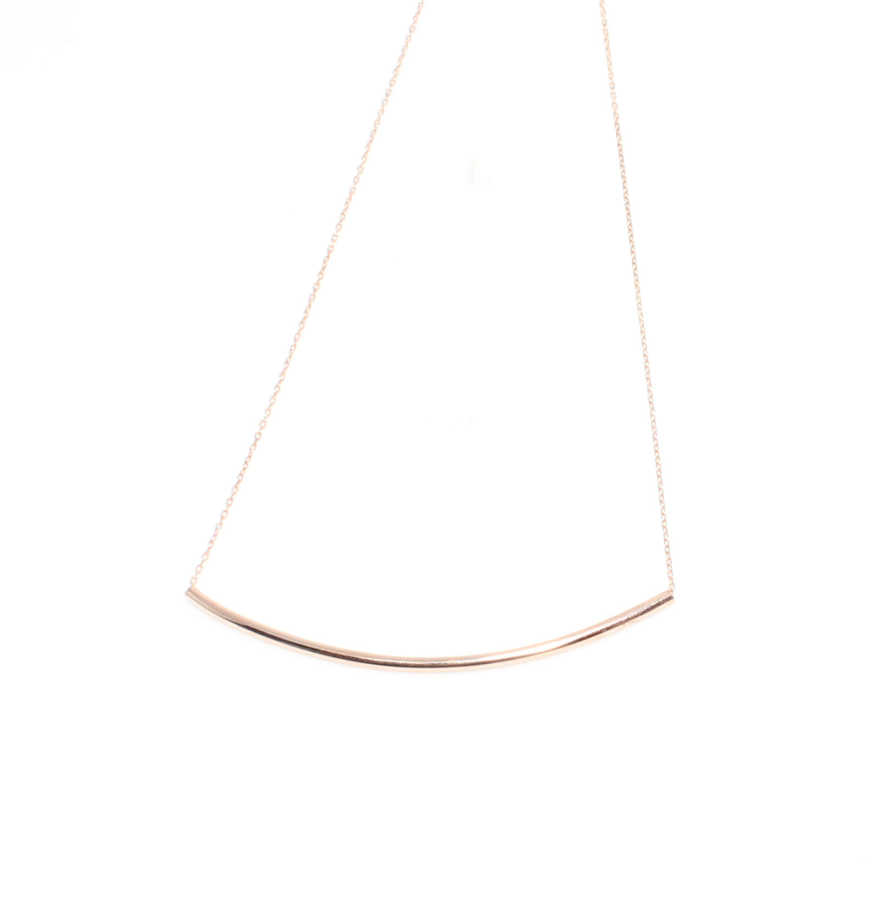 925 Sterling Silver, Gold Plated, Long Tube Dainty Pendant Necklace - Chain Size: 42 cm - Weight: 2,2 g