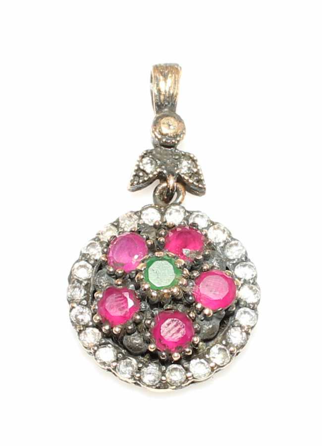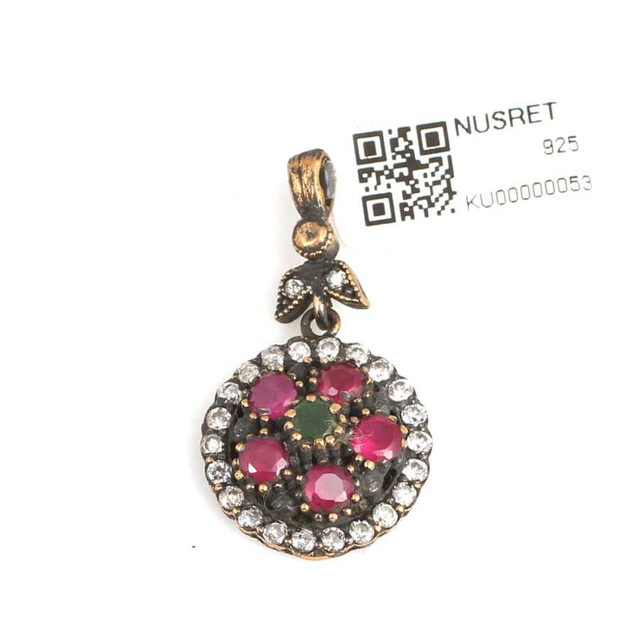Kolye ucu 925 ayar gümüş ve bronzdan imal edilmiştir. Minik yuvarlak şeklinde kolye ucu 1,8 cm'ye 3,3 cm boyutlarındadır. Zincir dahil değildir. Kolye ucu sentetik zümrüt, yakut ve zirkon taşları vardır. Otantik kolye ucu 5,23 gram ağırlığındadır.
