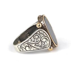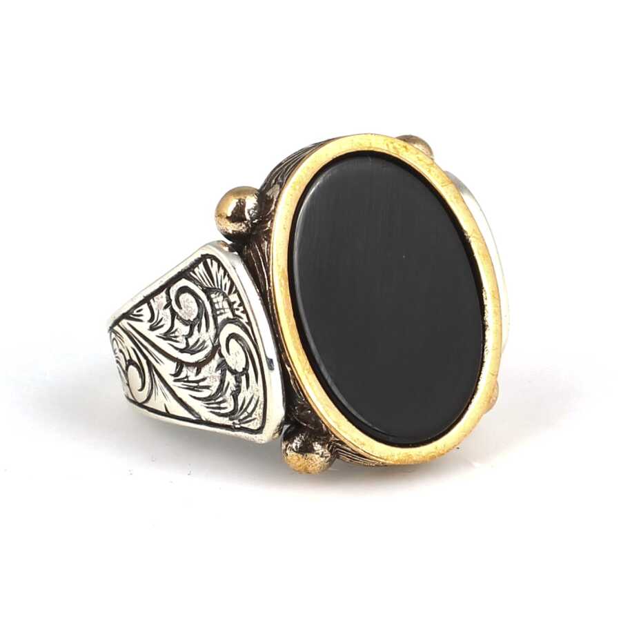 925 Ayar Gümüş Bronz Karışımı Oval Onix Taşlı Erkek Yüzük