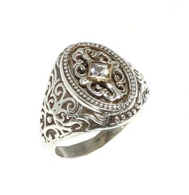 925 Ayar Gümüş Bronz Konstantinapol Tasarım Beyaz Taşlı Yüzük