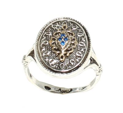 925 Ayar Gümüş Ve Bronz Karışımı taşlı Otantik Yüzük 21 no, mavi taşlı Gramı: 6,04