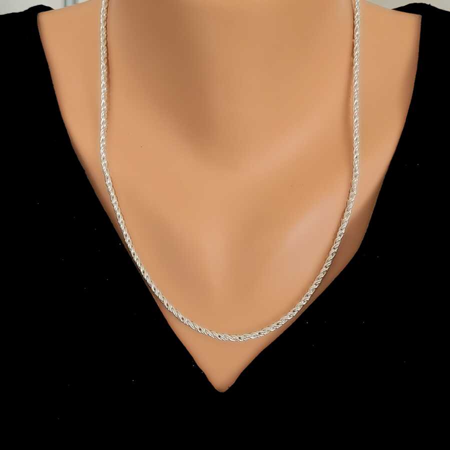 925 Ayar Gümüş Burgu Halat Zincir Kolye, 50 Cm