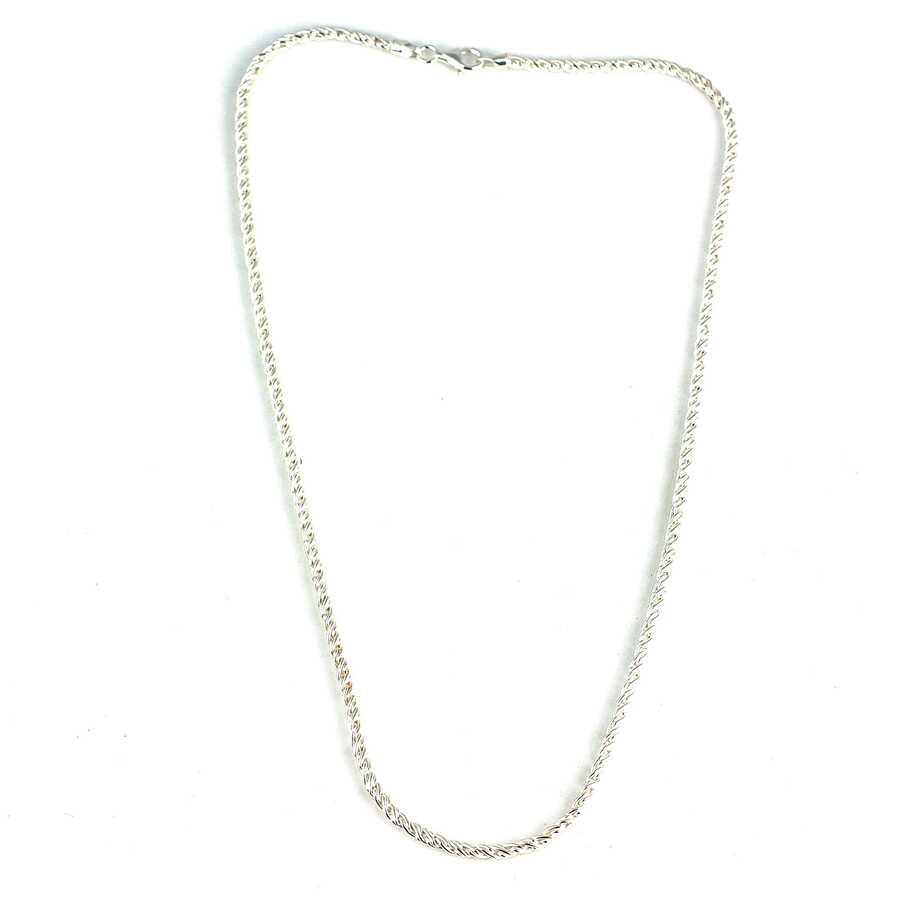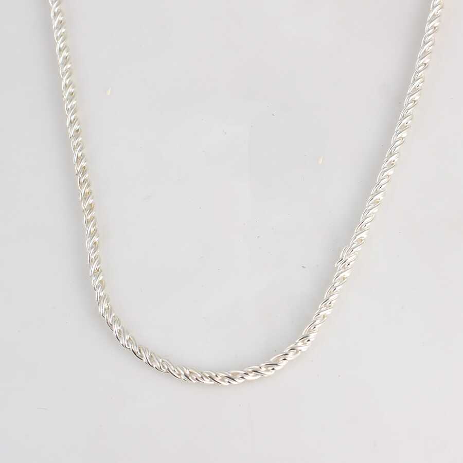 Gümüş kolye 925 ayar gümüşten yapılmıştır. Burgu halat zincir kolye 50 cm uzunluğundadır. Kolye 2,7 mm kalınlığındadır. Kolye taşsızdır. Ağırlığı 16,09 gramdır.