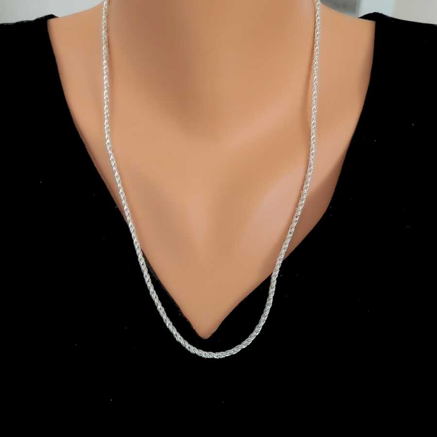 Gümüş kolye 925 ayar gümüşten yapılmıştır. Burgu halat zincir kolye 55 cm uzunluğundadır. Kolye 3 mm kalınlığındadır. Kolye taşsızdır. Ağırlığı 18,02 gramdır.