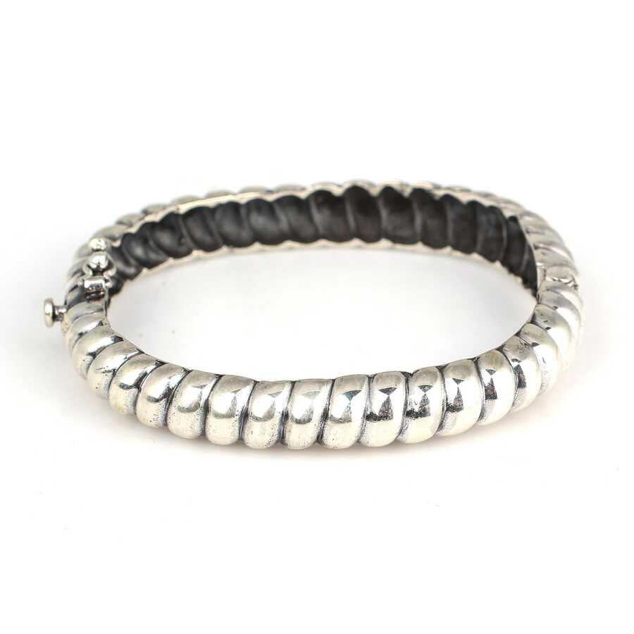 Bilezik 925 ayar gümüşten imal edilmiştir. Burgu model bilezik 1 cm eninde ve 5,8 - 5,5 cm çapındadır. Bilezik taşsızdır. Gümüş bilezik 40,6 gram ağırlığındadır