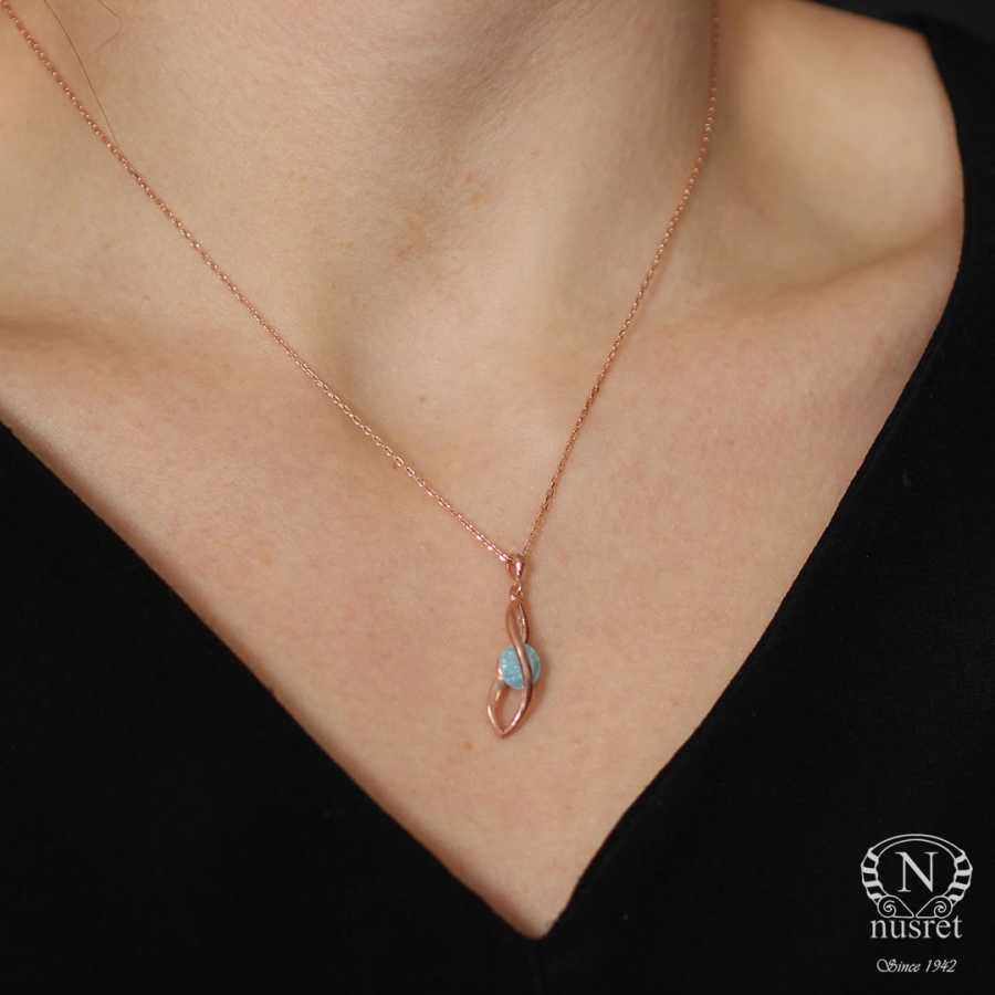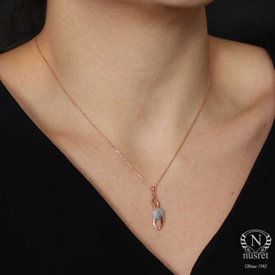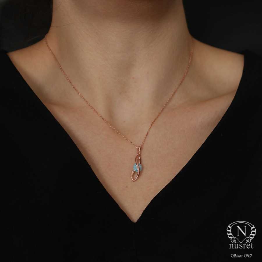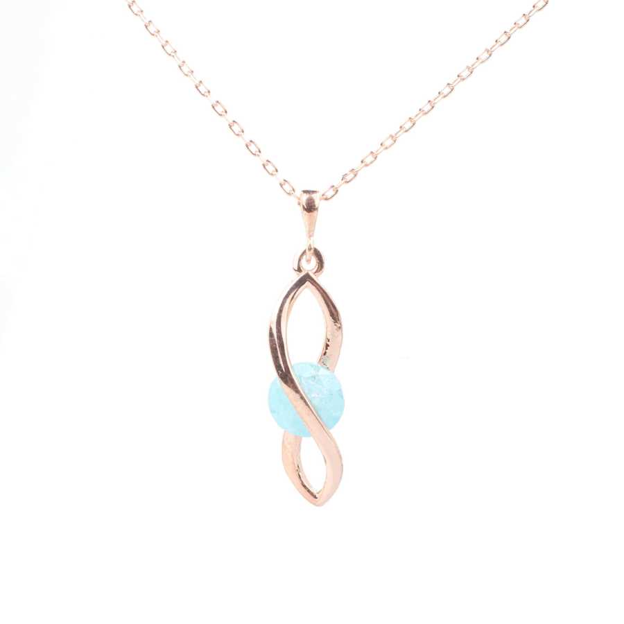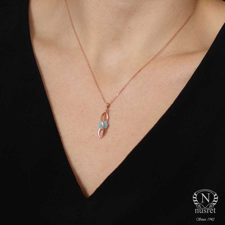 925 Ayar Gümüş Buzlu Akuamarin Taşlı Sonsuzluk Model Kolye