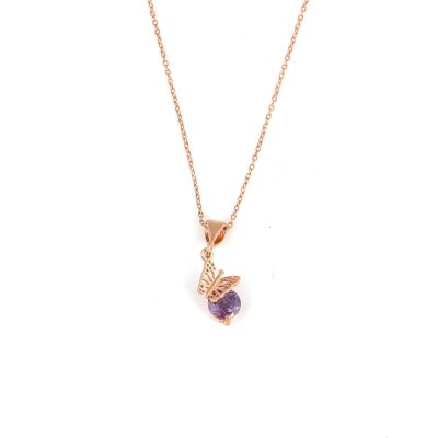 925 Ayar Gümüş Buzlu Ametist Taşlı Kelebek Kolye