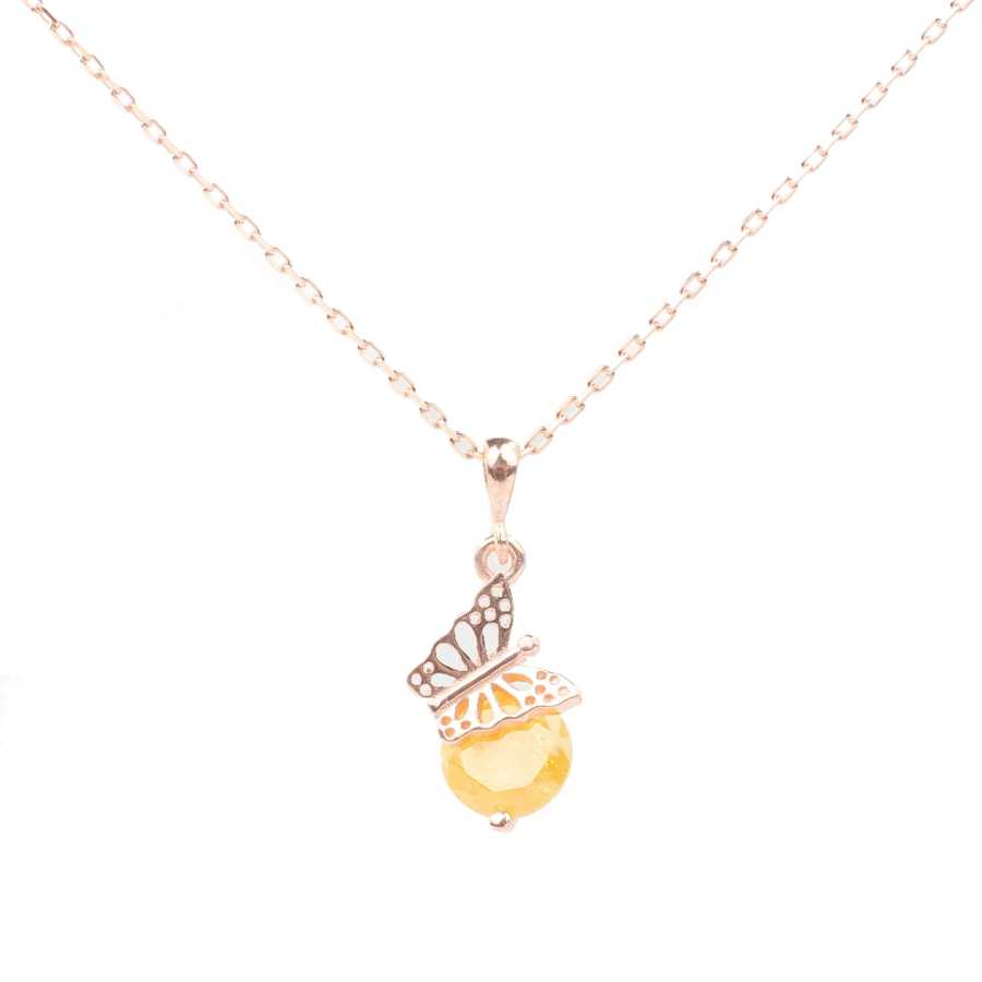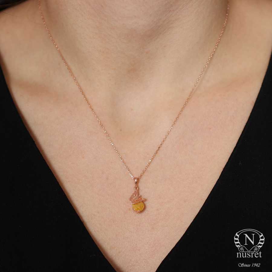 925 Ayar Gümüş Buzlu Limon Quartz Taşlı Kelebek Kolye