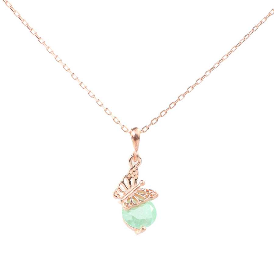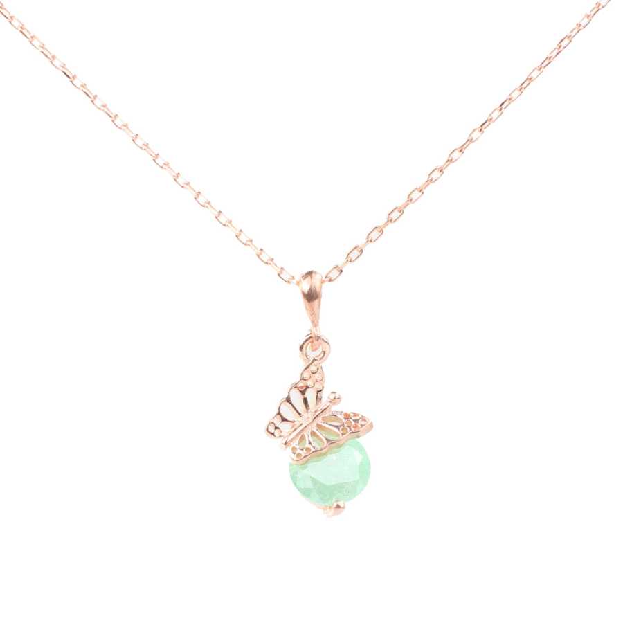 925 Ayar Gümüş Buzlu Peridot Taşlı Kelebek Kolye