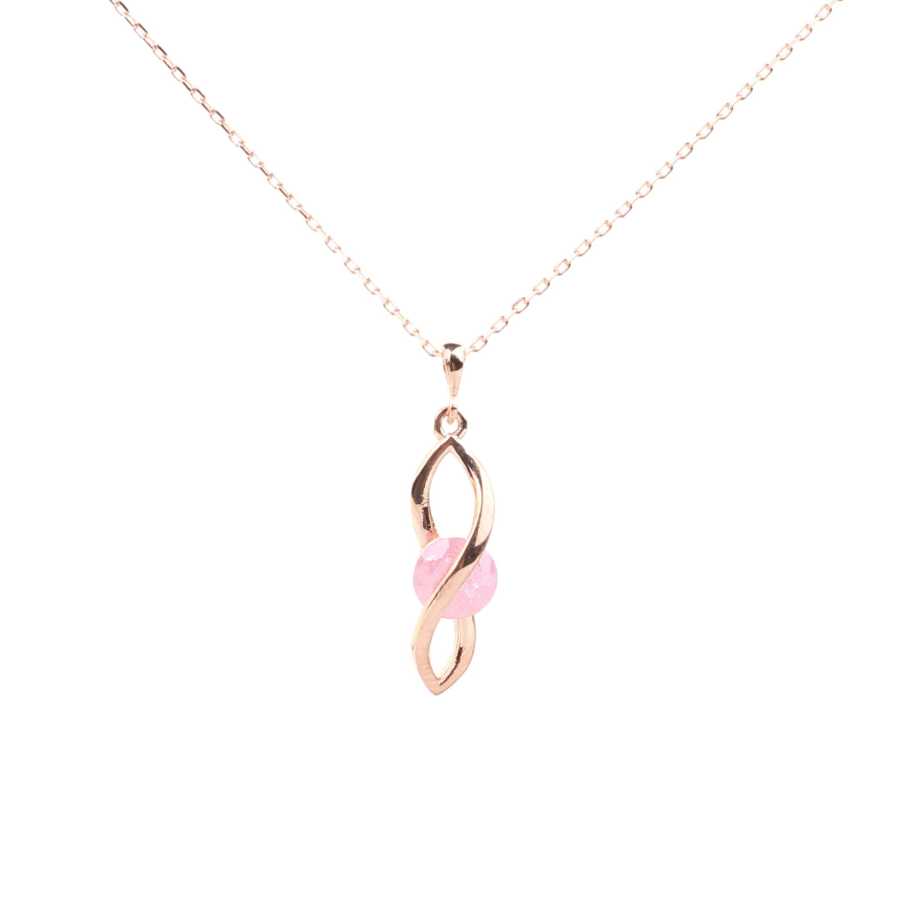 925 Ayar Gümüş Buzlu Pink Quartz Taşlı Sonsuzluk Model Kolye