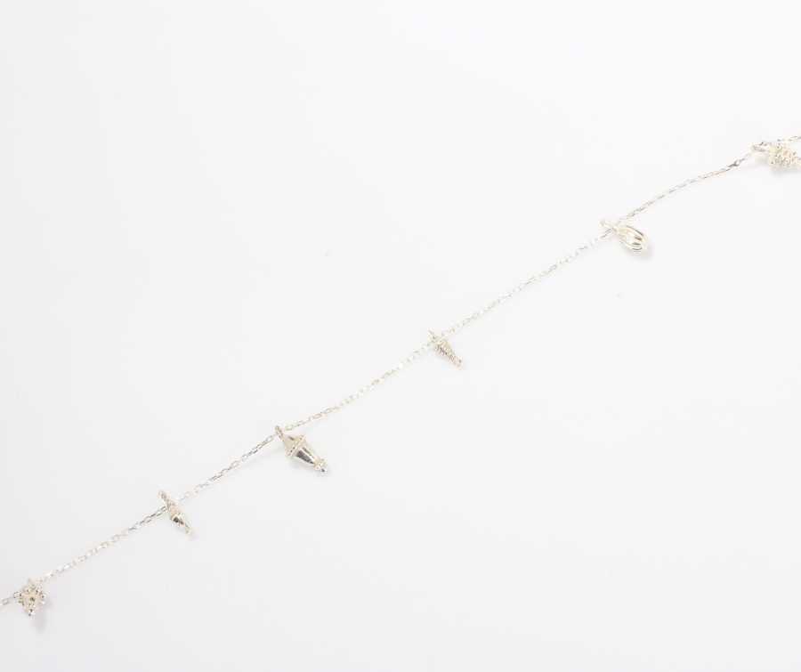 Bu mücevher parçası 925 ayar gümüşten imal edilmiştir. Halhal 21 cm uzunluğundadır. Uzatma zinciri ile 25 cm'ye kadar uzatılabilir. Halhal çam ağacı ve kozalak figürlerinden oluşmaktadır. Halhal taşsızdır. Halhalın ağırlığı 3,34 gramdır.