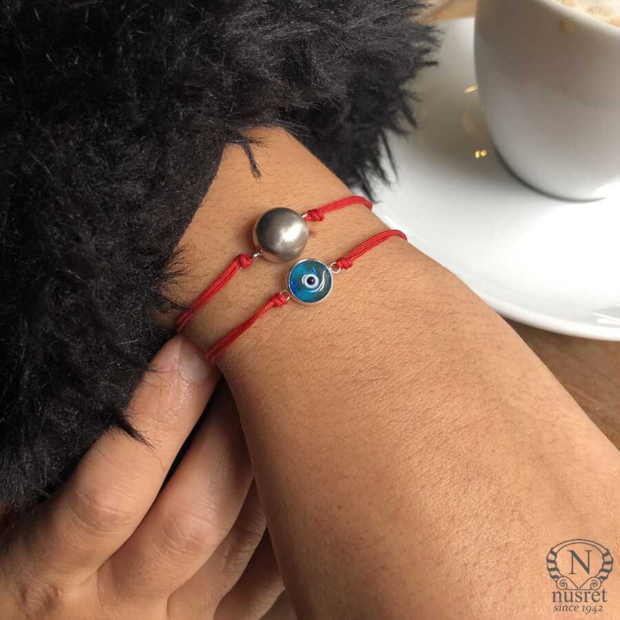 925 Ayar Gümüş Cam Göz Kırmızı İpli Bileklik