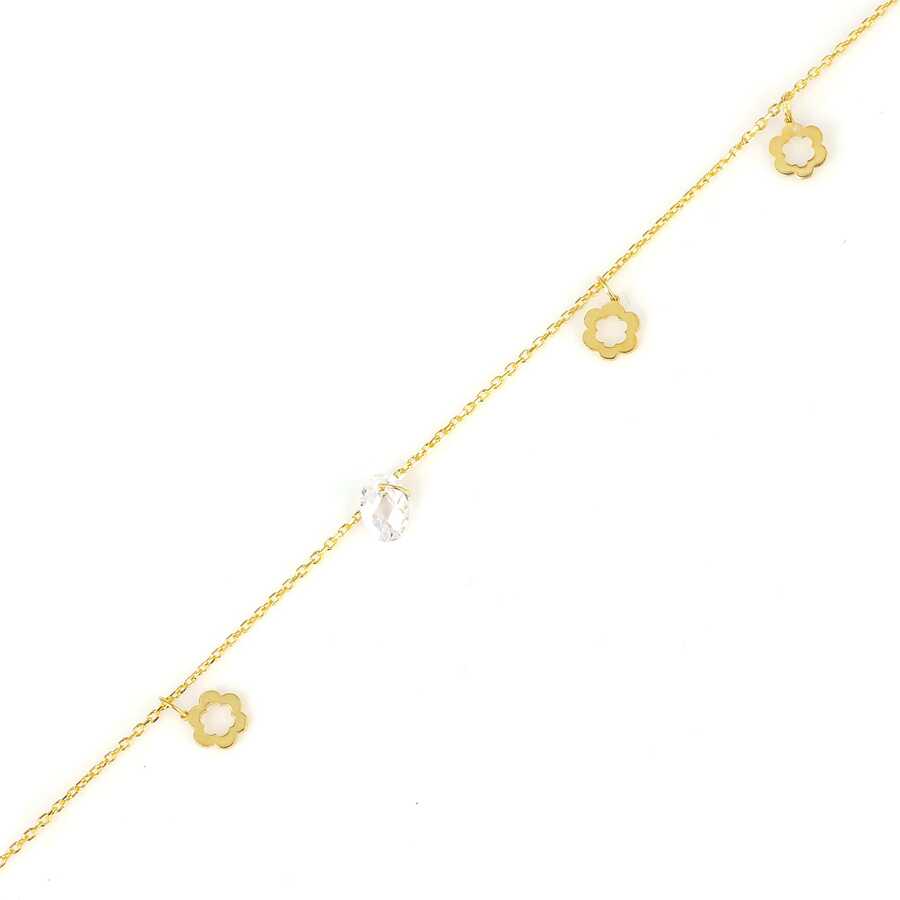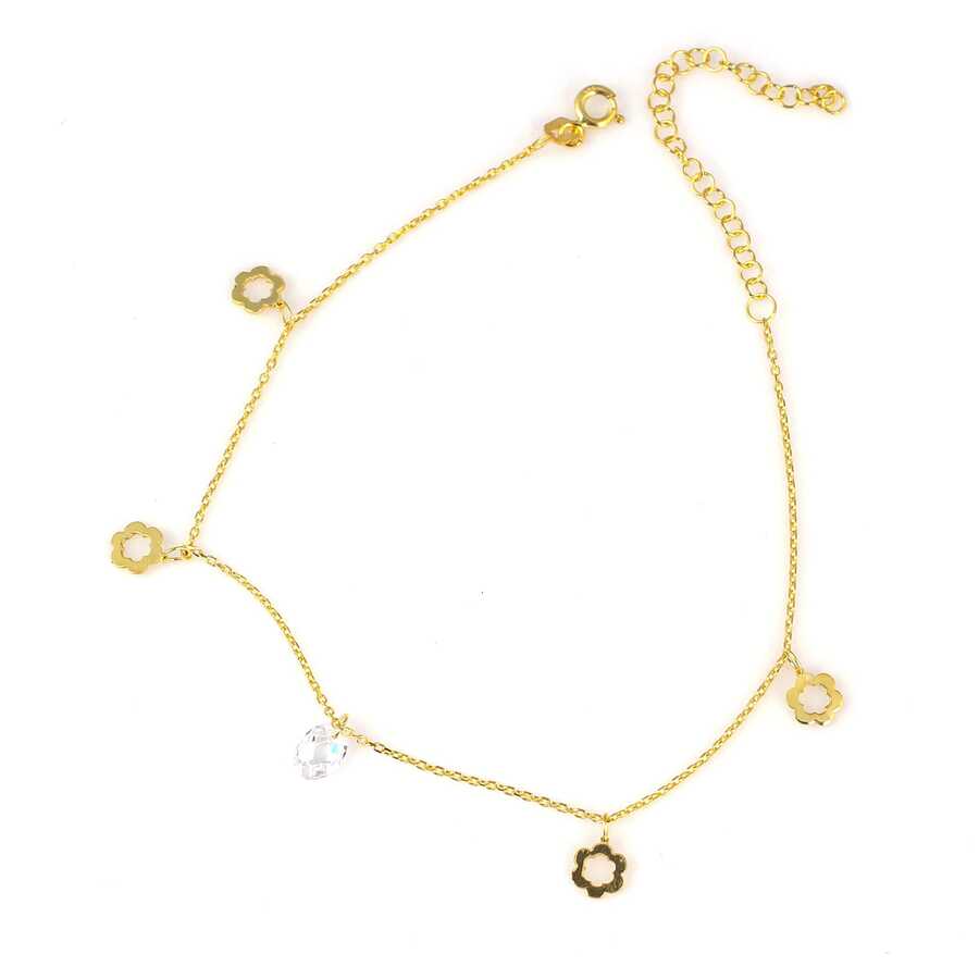 Bu mücevher parçası 925 ayar gümüşten imal edilmiştir. Çiçek figürlü halhal 20,5 cm uzunluğundadır. Uzatma zinciri ile 25 cm'ye kadar uzatılabilir. Halhal 4 adet çiçek figürlerinden oluşmaktadır. Halhal zirkon renk taşlıdır. Halhalın ağırlığı 1,77 gramdır.