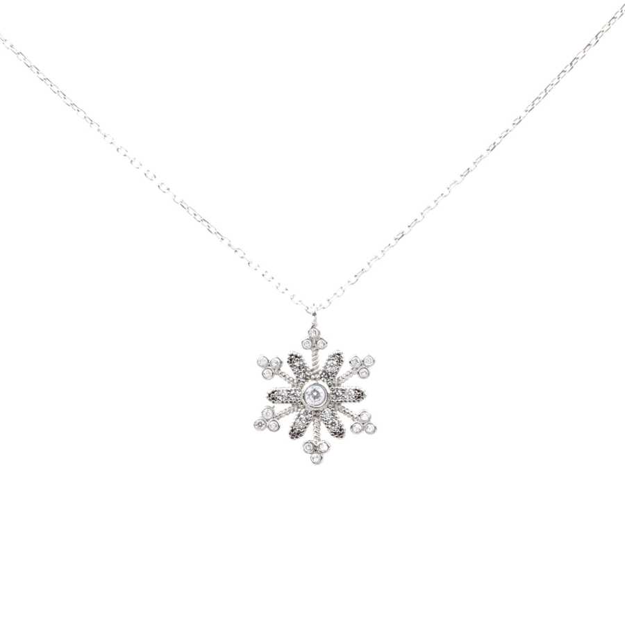 925 Ayar Gümüş Çiçekli Kar Tanesi Kolye, Beyaz Taş