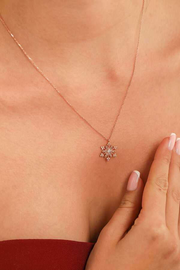 WHYL1161 - 925 Ayar Gümüş Çiçekli Kar Tanesi Kolye, Beyaz Taş