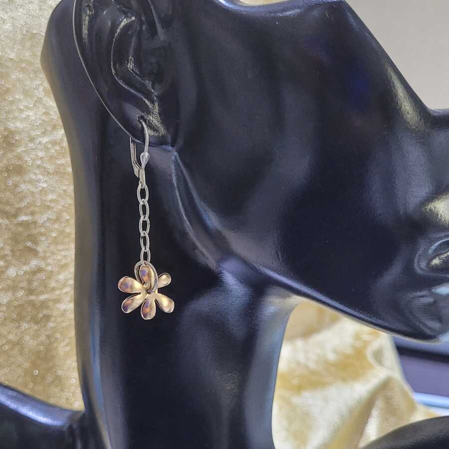 Gümüş küpe 925 ayar gümüşten yapılmıştır. Sallantılı çiçek model küpe 1,8 cm'ye 5,5 cm boyutlarındadır. Küpe taşsızdır. Ağırlığı 5 gramdır.