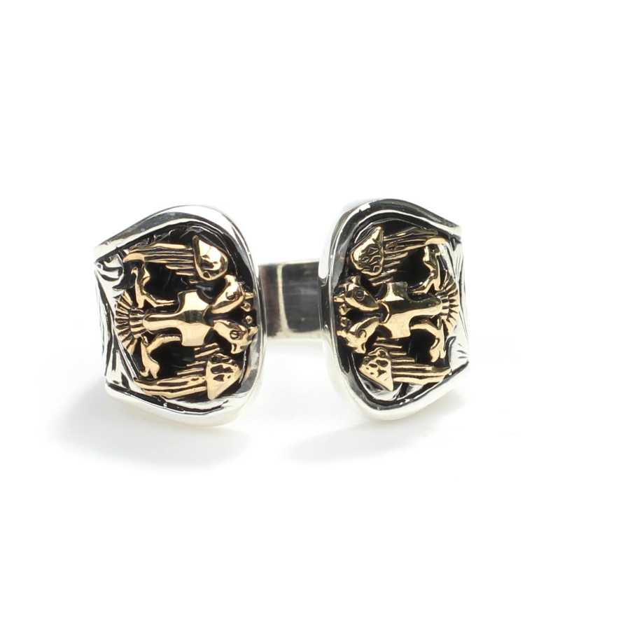 Yüzük 925 ayar gümüşten üretilmiştir. Modern tasarım yüzüğün üst kısmında çift başlı kartal figürü vardır. Yüzük 2,5 cm'ye 1,4 cm boyutlarındadır. Tüm ölçüler yapılabilmektedir. Yüzük taşsızdır. Ağırlığı 13,2 gramdır.