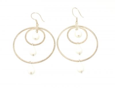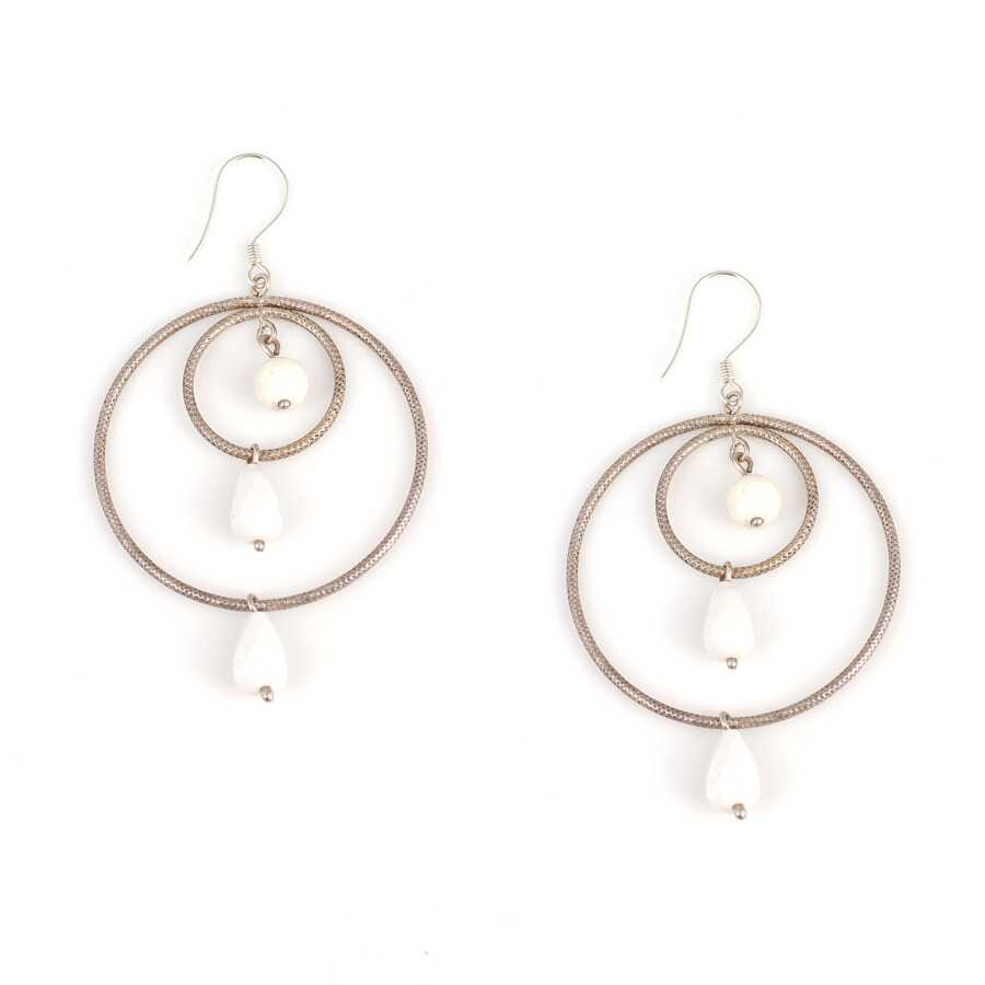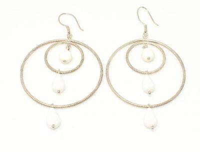 Gümüş küpe 925 ayar gümüşten yapılmıştır. Çift halkanın iç içe geçmesi ile oluşan sallantı şeklindeki küpe 4,8 cm'ye 2,4 cm boyutlarındadır. Küpe damla kalsedon taşlıdır. Ağırlığı 11,85 gramdır.