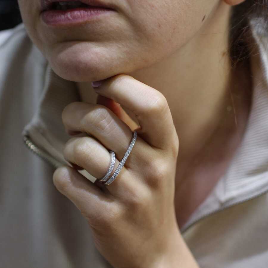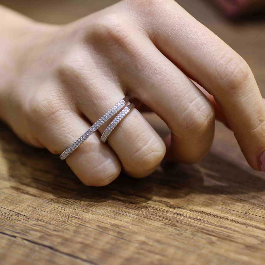 925 Ayar Gümüş Çift Parmak Çift Sıra Taşlı Yüzük