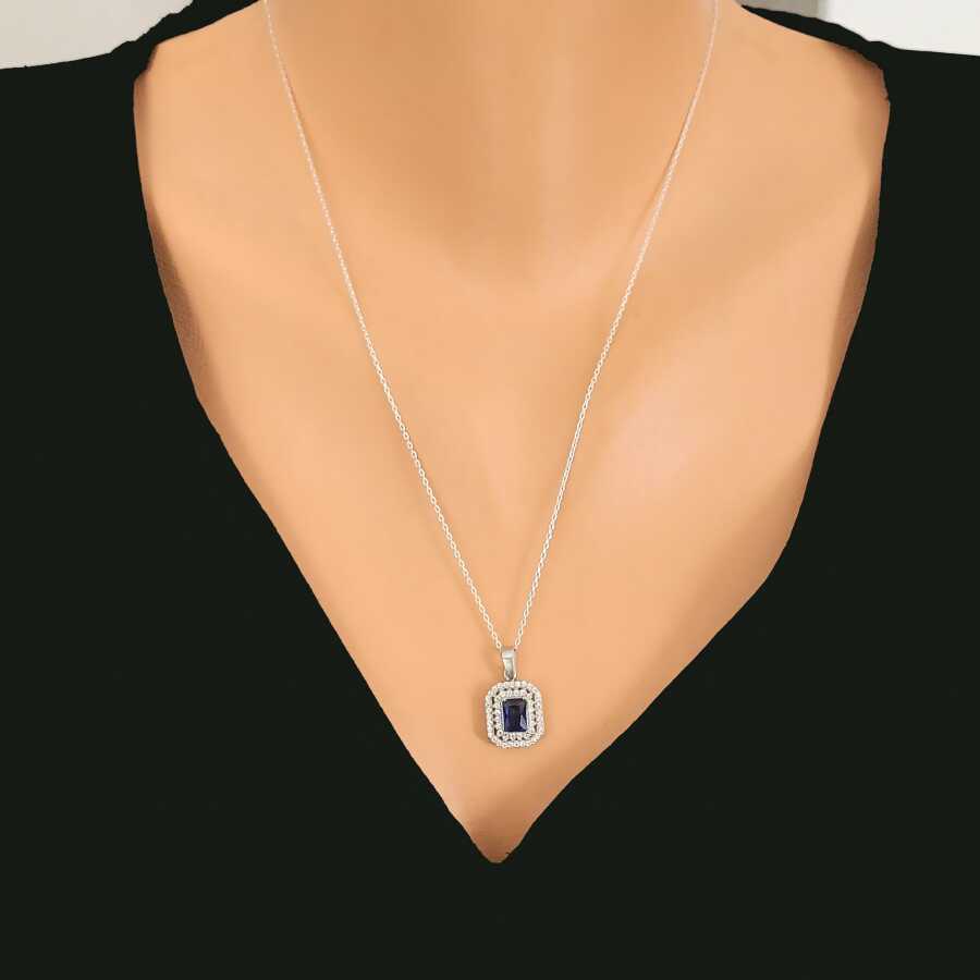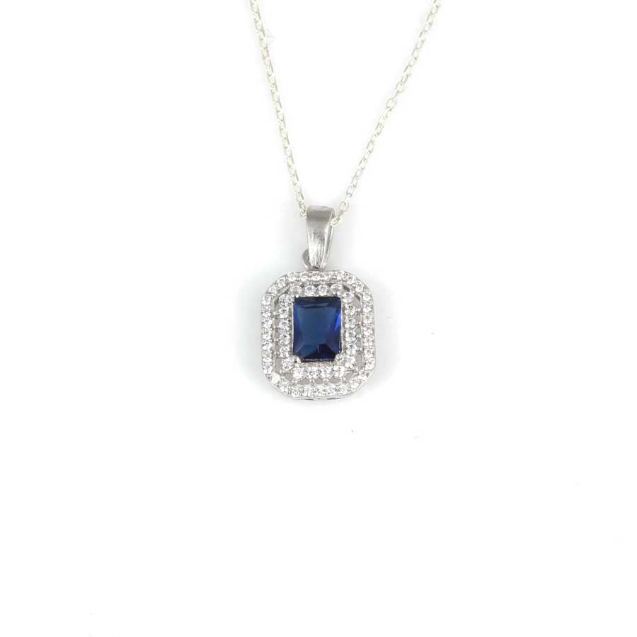 Notify me when its in stock Gümüş kolye 925 ayar gümüşten yapılmıştır. Dikdörtgen çift sıra anturaj model kolye 1,4 cm'ye 1,2 cm boyutlarındadır. Safir renk taşı 0,7 cm'ye 0,5 cm boyutlarındadır. Gümüş kolye 45 cm uzunluğundadır. Kolye beyaz ve safir renk zirkon taşlıdır. Ağırlığı 3,08 gramdır.