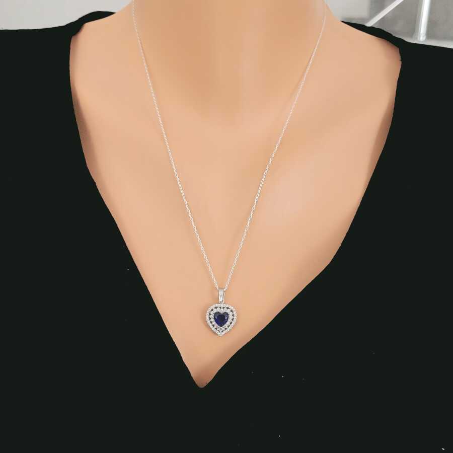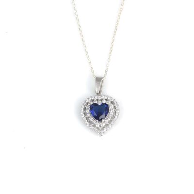Notify me when its in stock Gümüş kolye 925 ayar gümüşten yapılmıştır. Kalp çift sıra anturaj model kolye 1,5 cm'ye 1,4 cm boyutlarındadır. Safir renk taşı 0,7 cm boyutlarındadır. Gümüş kolye 45 cm uzunluğundadır. Kolye beyaz ve safir renk zirkon taşlıdır. Ağırlığı 3,05 gramdır.