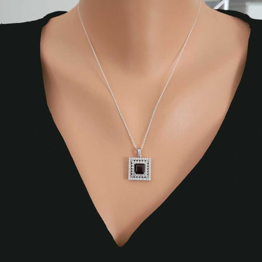 Notify me when its in stockGümüş kolye 925 ayar gümüşten yapılmıştır. Kare çift sıra anturaj model kolye 1,6 cm boyutlarındadır. Garnet taşı 0,7 cm boyutlarındadır. Gümüş kolye 45 cm uzunluğundadır. Kolye beyaz renk zirkon ve garnet taşlıdır. Ağırlığı 3,28 gramdır.