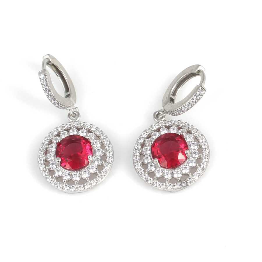 Notify me when its in stock Gümüş küpe 925 ayar gümüşten yapılmıştır. Yuvarlak çift sıra anturaj model küpe tepelik dahil 3,1 cm'ye 1,6 cm boyutlarındadır. Yakut renk zirkon taşı 0,8 cm boyutlarındadır. Gümüş Küpe beyaz ve yakut renk zirkon taşlıdır. Ağırlığı 6,4 gramdır.