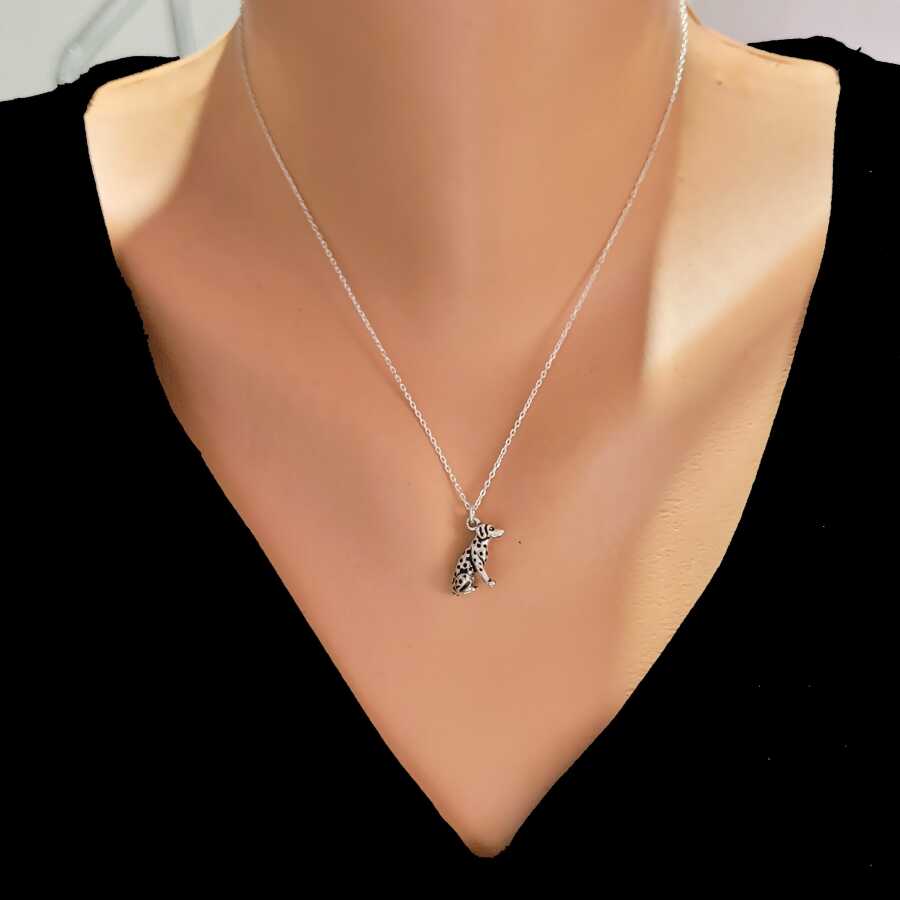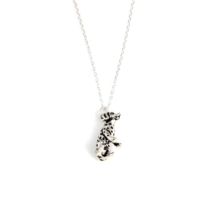 Gümüş kolye 925 ayar gümüşten yapılmıştır. Gümüş kolye 45 cm uzunluğundadır. Dalmaçyalı köpek şeklinde kolye 1,6 cm'ye 1,0 cm boyutlarındadır. Kolye taşsızdır. Charm Kolye 3,93 gramdır.