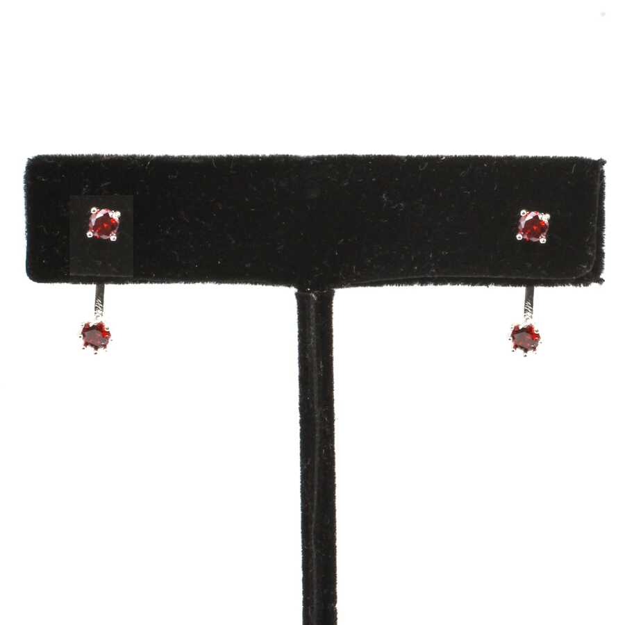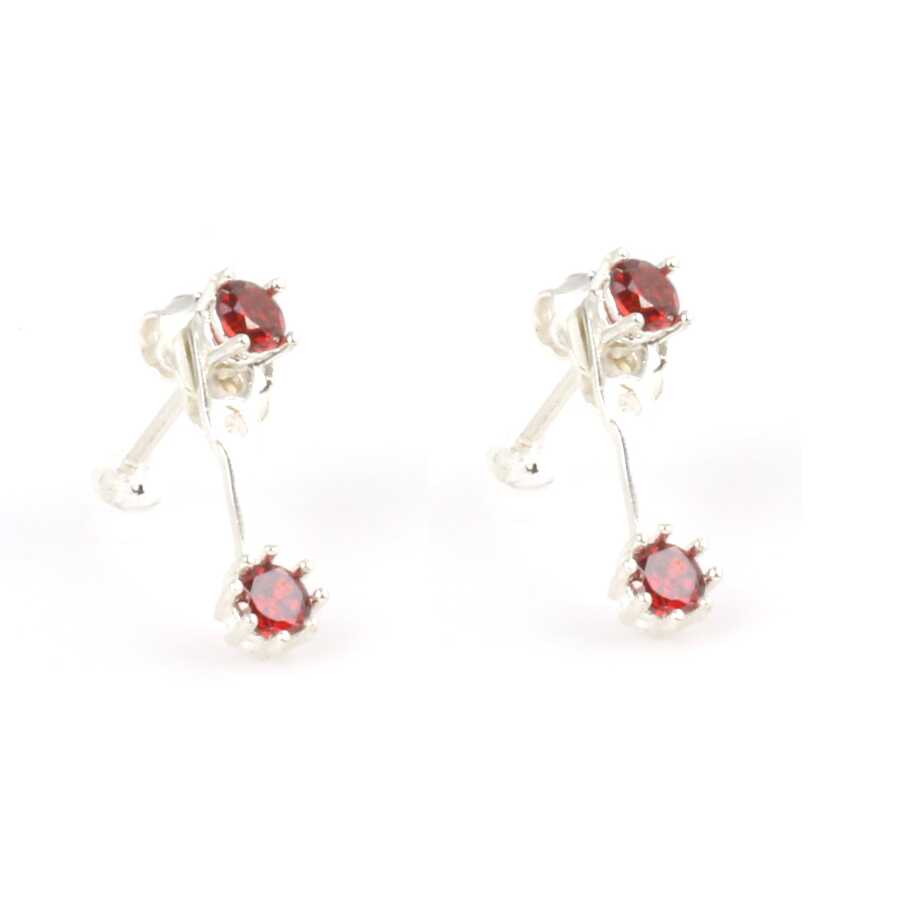 925 Ayar Gümüş Çift Taş Garnet Taşlı Küpe